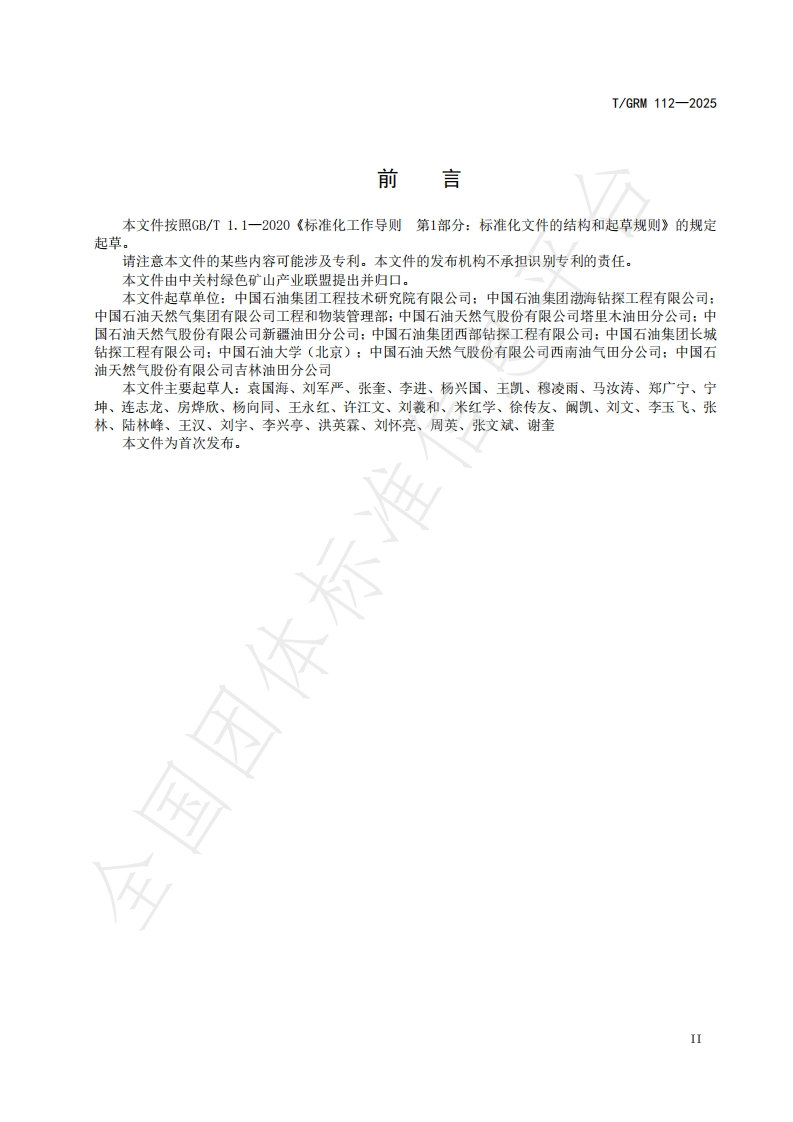 螺旋式套管刷使用规范UsagestandardsforSpiralCasingBrush348072@abc6天前发布关注私信0.36MB7页022螺旋式套管刷使用规范UsagestandardsforSpiralCasingBrush此内容为付费资源,请付费后查看¥19¥23黄金会员免费钻石会员免费立即购买您当前未登录!建议登陆后购买,可保存购买订单付费资源 第1页 / 共7页 第2页 / 共7页 第3页 / 共7页 第4页 / 共7页 第5页 / 共7页 试读已结束,还剩2页,您可下载完整版后进行离线阅读 THE END标准规范 文本预览 ICS75.180.10CCS E 92DGRM中关村绿色矿山产业联盟团体标准T/GRM112-2025螺旋式套管刷使用规范Usage standards for Spiral Casing Brush国团体标2025-02-24发布2025-02-25实施中关村绿色矿山产业联盟发布 查看更多 收起部分 喜欢就支持一下吧收藏