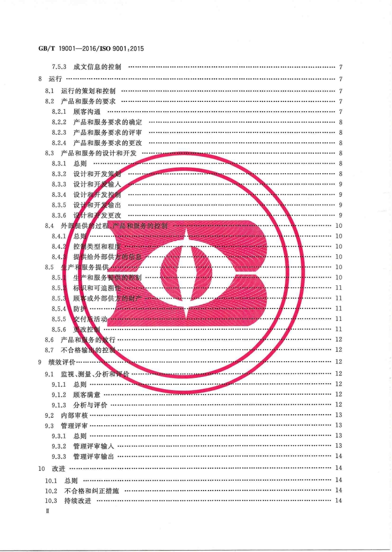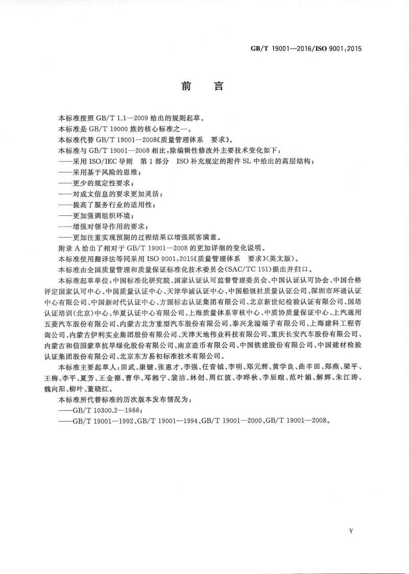 ICS03.120.10A00GB中华人民共和国国家标准GB/T19001-2016/IS09001:2015代替GB/T19001一2008质量管理体系要求Quality management systems-Requirements(IS09001:2015,IDT)2016-12-30发布2017-07-01实施中华人民共和国国家质量监督检验检疫总局中国国家标准化管理委员会发布