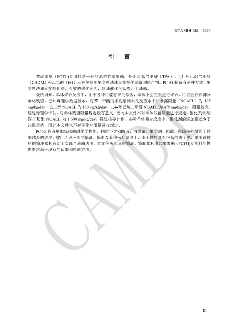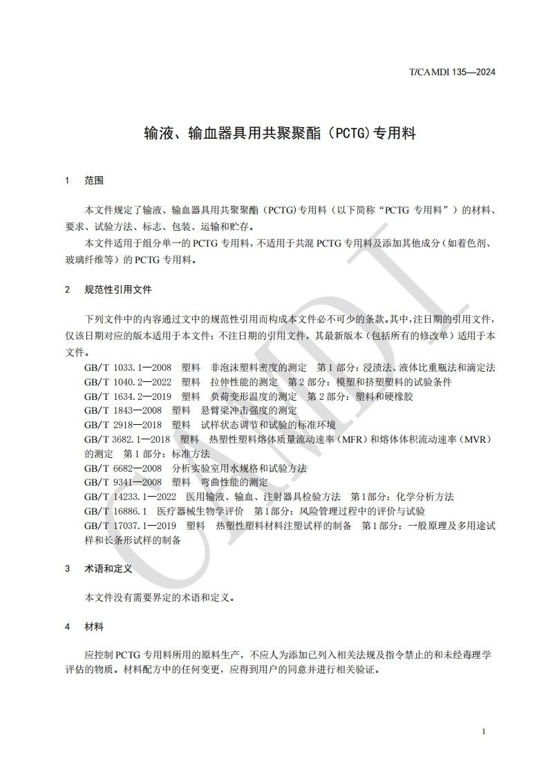ICS11.040.20CCS C 31中国医疗器械行业协会China Association for Medical Devices Industry团体标准T/CAMDI135-2024输液、输血器具用共聚聚酯(PCTG)专用料Copolyester PCTG material for medical infusion and transfusion equipments2024-12-31发布2025-1-3实施中国医疗器械行业协会发布