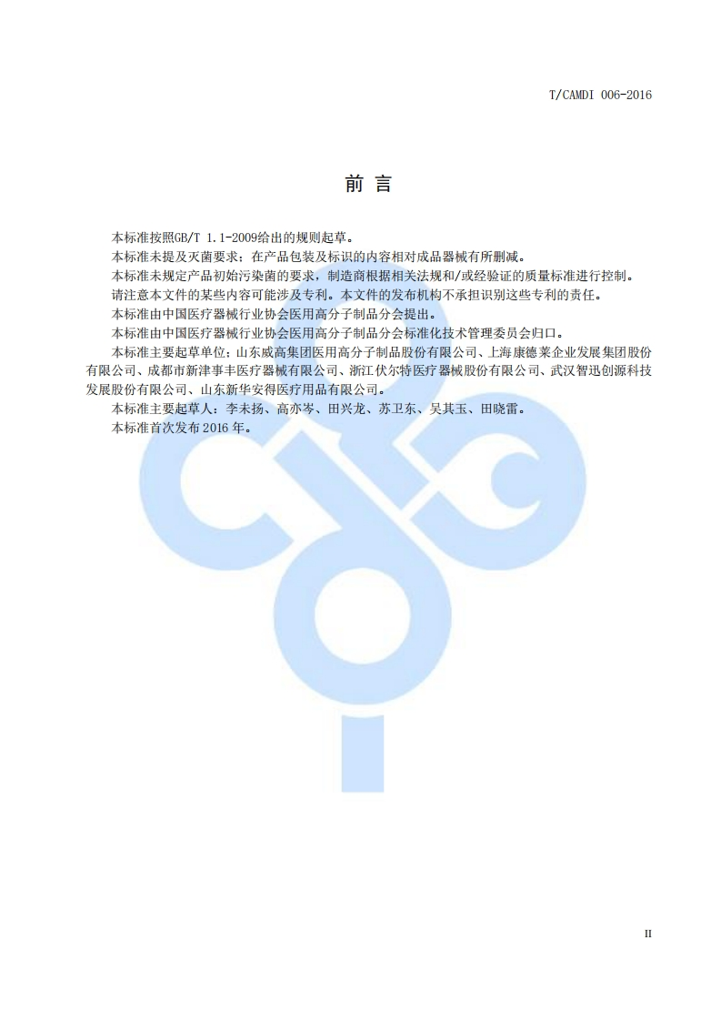 输液输血器具用橡胶注射件348072@abc19天前发布关注私信0.28MB10页036输液输血器具用橡胶注射件此内容为付费资源,请付费后查看¥19¥23黄金会员免费钻石会员免费立即购买您当前未登录!建议登陆后购买,可保存购买订单付费资源 第1页 / 共10页 第2页 / 共10页 第3页 / 共10页 第4页 / 共10页 第5页 / 共10页 试读已结束,还剩5页,您可下载完整版后进行离线阅读 THE END标准规范 文本预览 ICS号:11.020中国医疗器械行业协会团体标准T/CAMD I006-2016输液输血器具用橡胶注射件2016-12-22发布2017-07-01实施中国医疗器械行业协会发布 查看更多 收起部分 喜欢就支持一下吧收藏