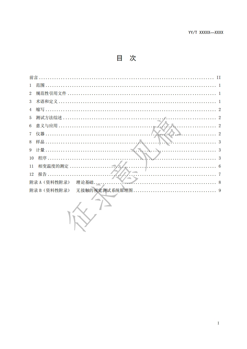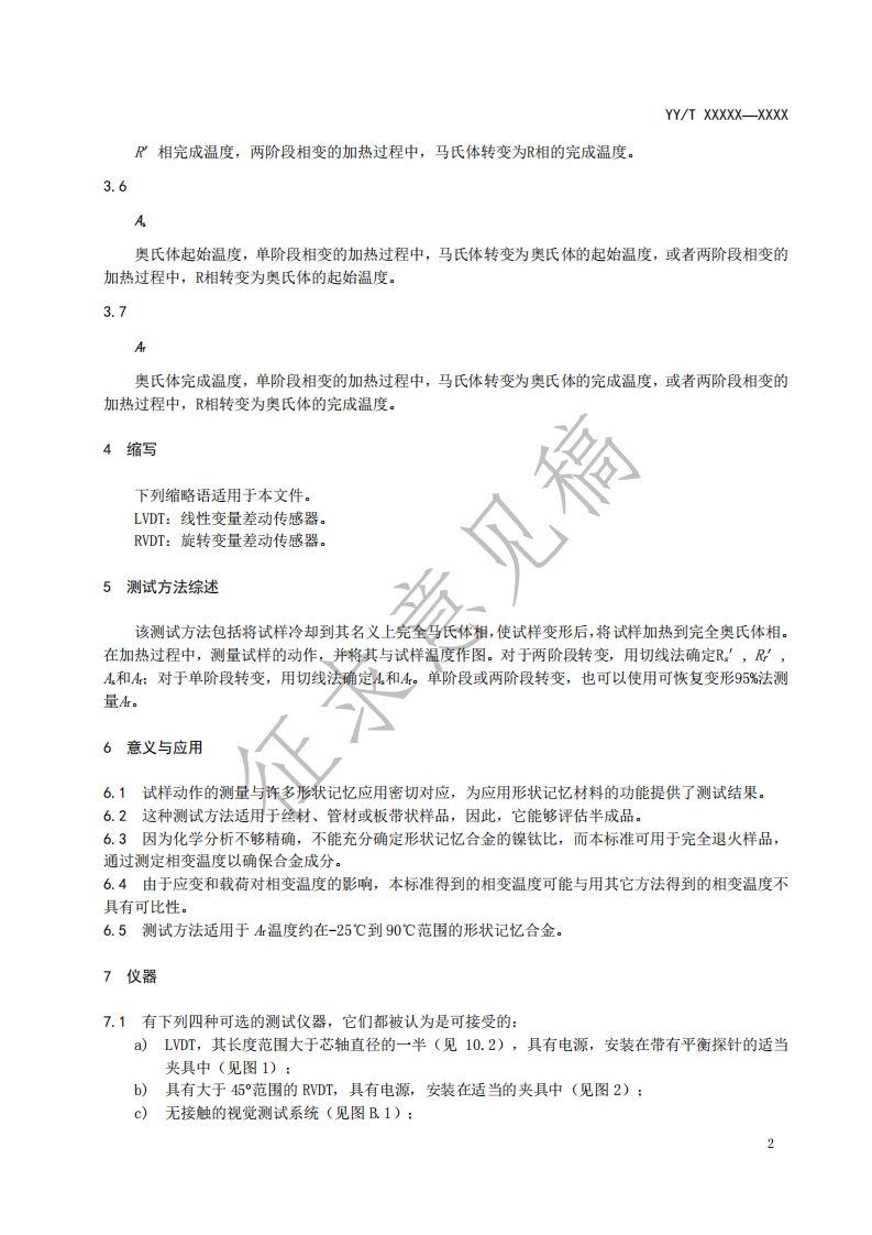 1CS11.040.40C35中华人民共和国医药行业标准YY/T XXXXX一XXXX通过弯曲和自由恢复测定镍钛形状记忆合金相变温度的测试方法Standard test method for determination of transformation temperature ofnickel-titanium shape memory alloys by bend and free recovery人(征求意见稿)在提交反馈意见时,请将您知道的相关专利连同支持性文件一并附上。XXXX-XX-XX发布XXXX-XX-XX实施国家药品监督管理局发布