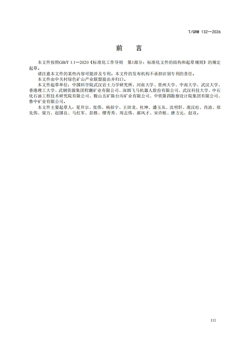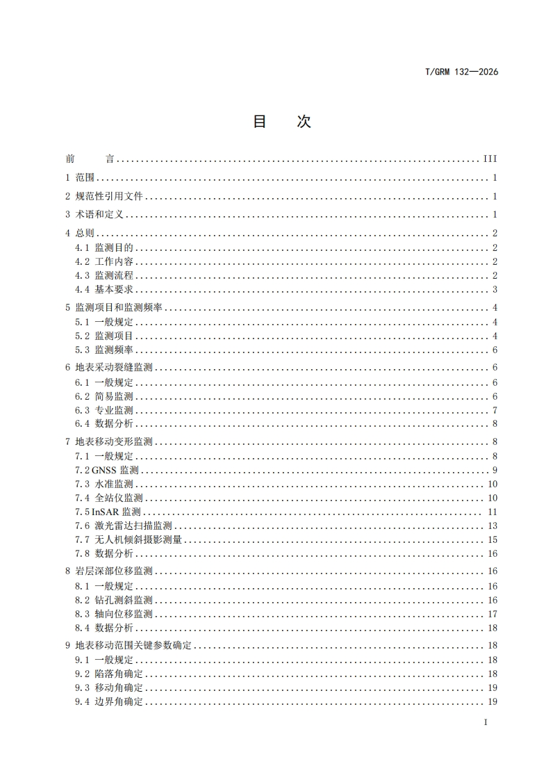 ICS73.020CCS D98IGRM中关村绿色矿山产业联盟团体标准T/GRM132—2026金属矿山地下开采岩层与地表移动变形监测技术规范Technical specification for the monitoring of strata and surface movement anddeformation in underground mining of metal mines2026-06-11发布2026-06-11实施中关村绿色矿山产业联盟发布