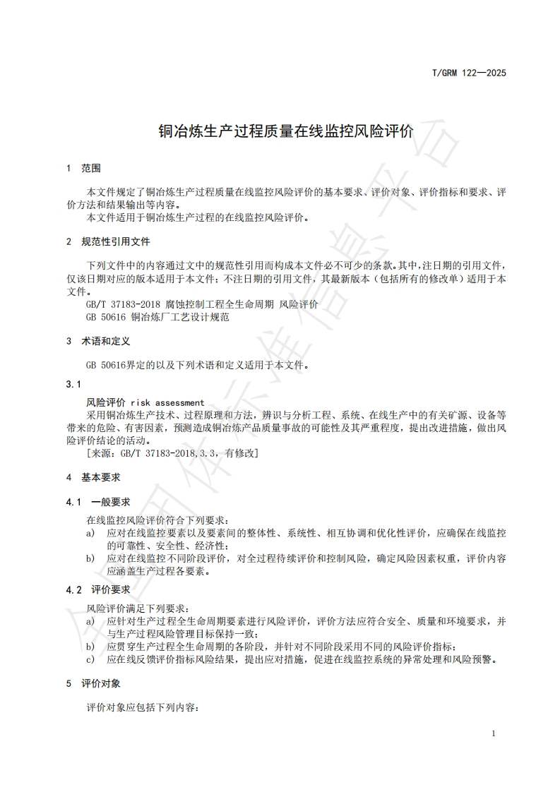 铜冶炼生产过程质量在线监控风险评价On-linemonitoringriskevaluationofcoppersmeltingproductionprocessquality348072@abc20天前发布关注私信1.74MB16页045铜冶炼生产过程质量在线监控风险评价On-linemonitoringriskevaluationofcoppersmeltingproductionprocessquality此内容为付费资源,请付费后查看¥19¥23黄金会员免费钻石会员免费立即购买您当前未登录!建议登陆后购买,可保存购买订单付费资源 第1页 / 共16页 第2页 / 共16页 第3页 / 共16页 第4页 / 共16页 第5页 / 共16页 试读已结束,还剩11页,您可下载完整版后进行离线阅读 THE END标准规范 文本预览 ICS77.120.01CCS H 40I/GRM中关村绿色矿山产业联盟团体标准T/GRM122-2025铜冶炼生产过程质量在线监控风险评价On-line monitoring risk evaluation of copper smelting production process quality国团体2025-04-23发布2025-04-24实施中关村绿色矿山产业联盟发布 查看更多 收起部分 喜欢就支持一下吧收藏