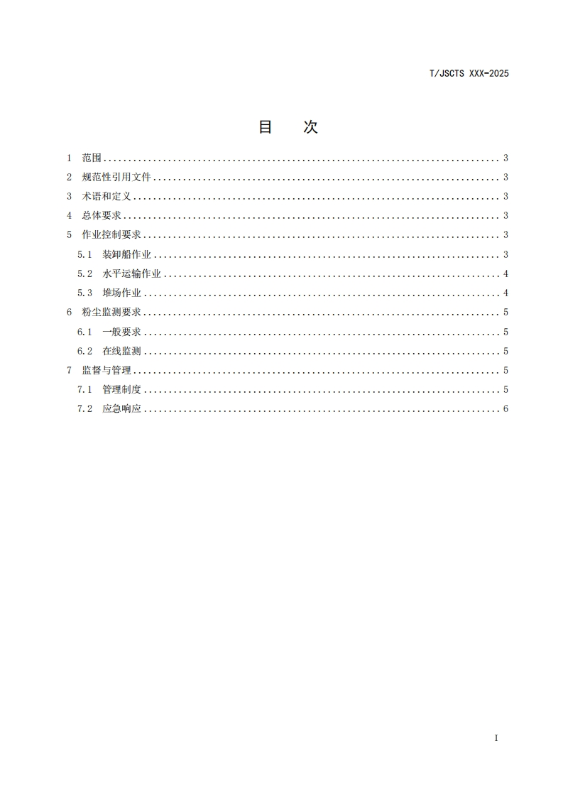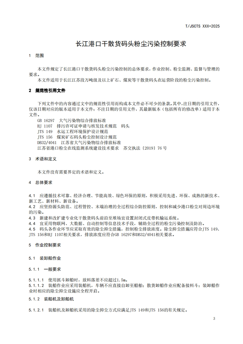 10S03.220.40CCS R 09团体标准T/JSCTS XXX-2025长江港口干散货码头粉尘污染控制要求Requirements for dust pollution control of yangtze river port dry bulk cargoterminal(征求意见稿)在提交反馈意见时,请将您知道的相关专利连同支持性文件一并附上。2025-XX-XX发布2025-XX-XX实施江苏省综合交通运输学会发布
