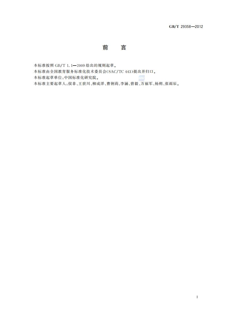 1Cs03.080A12中华人民共和国国家标准GB/T29358一2012@非正规教育与培训的学习服务质量要求职业培训Quality requirements of learning services for non-formal education and training-Vocational training2012-12-31发布2013-05-01实施中华人民共和国国家质量监督检验检疫总局发布中国国家标准化管理委员会