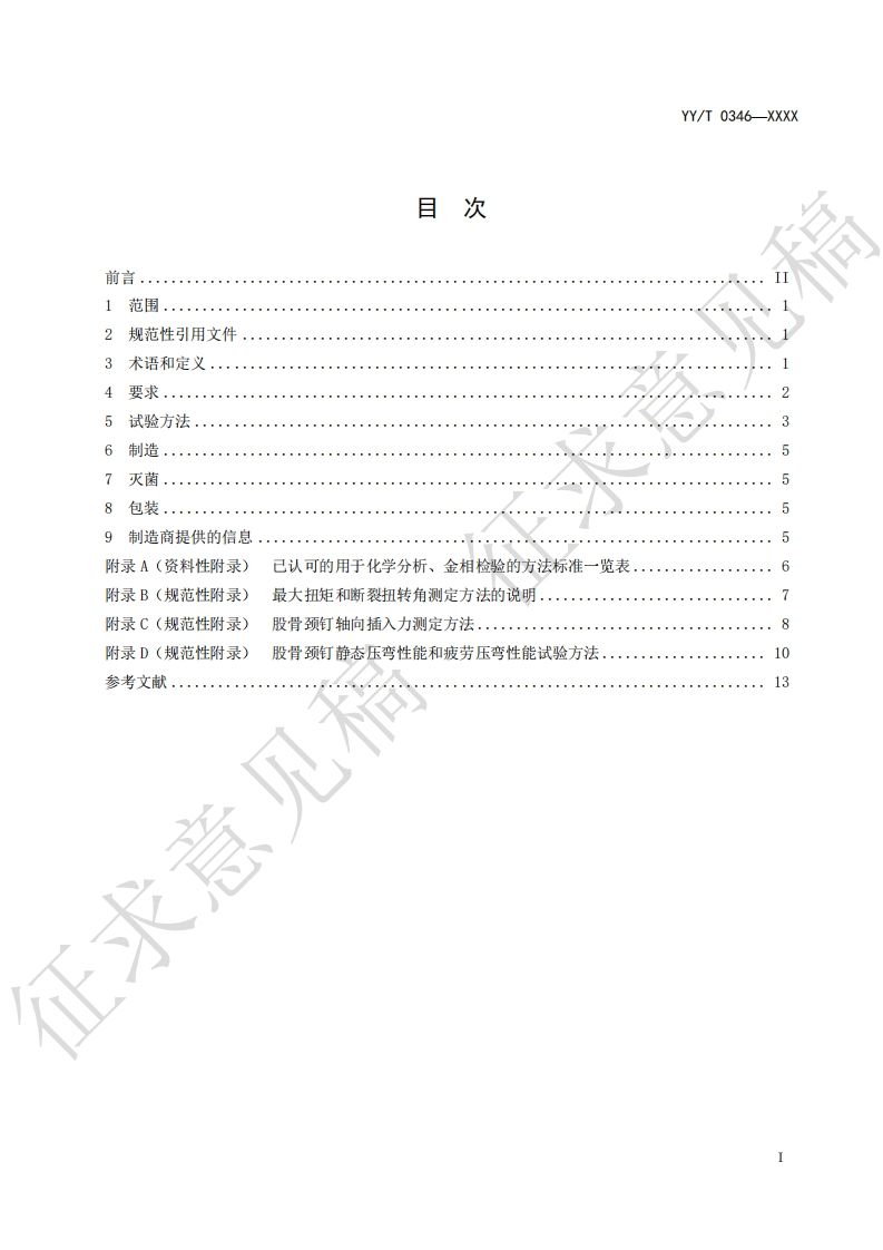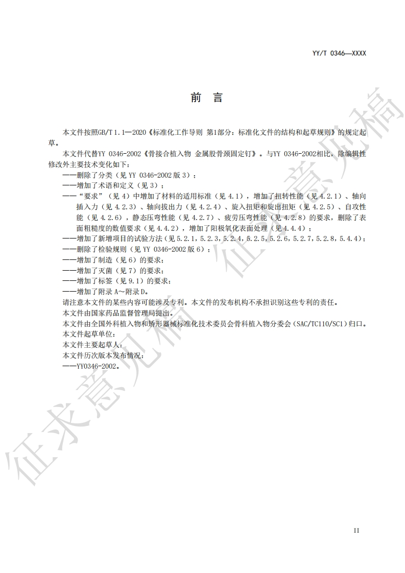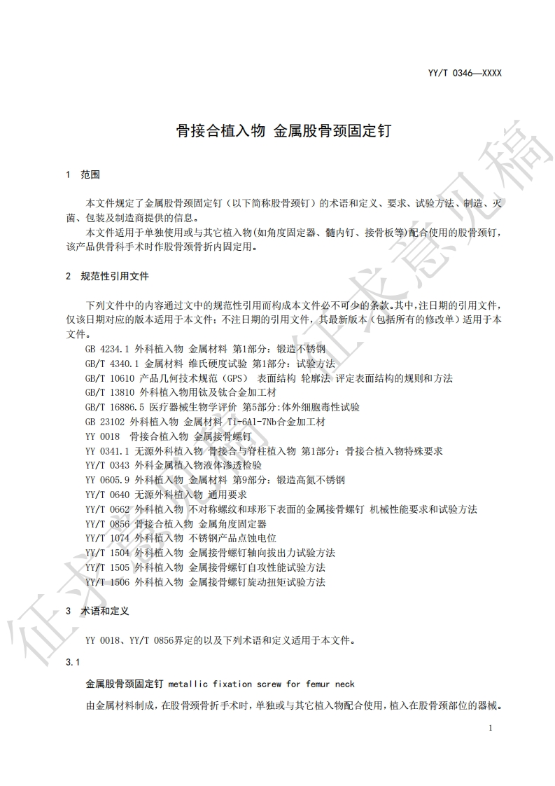 1CS11.040.40035中华人民共和国医药行业标准YY/T 0346-XXXX代替YY0346-2002骨接合植入物金属股骨颈固定钉Implants for osteosynthesis-Metallic fixation screw for femur neck征求意见(征求意见稿)在提交反馈意见时,请将您知道的相关专利连同支持性文件一并附上。XXXX-Xx-XX发布XXXX-XX-XX实施国家药品监督管理局发布