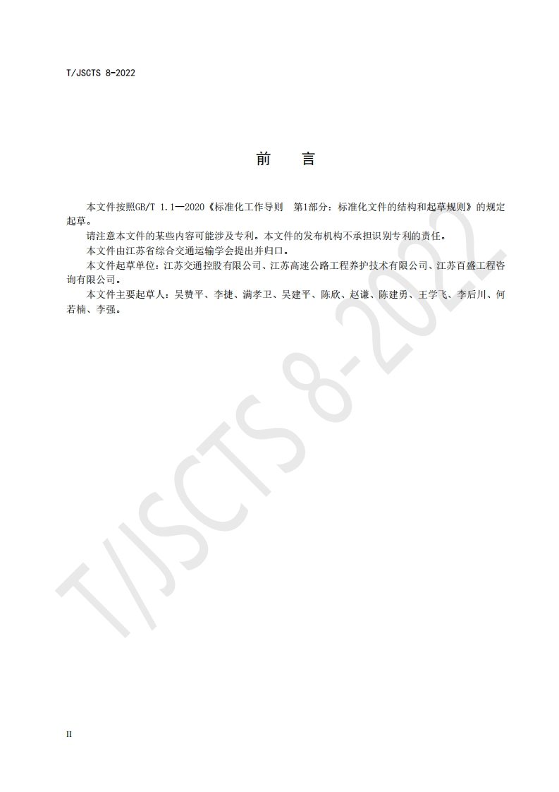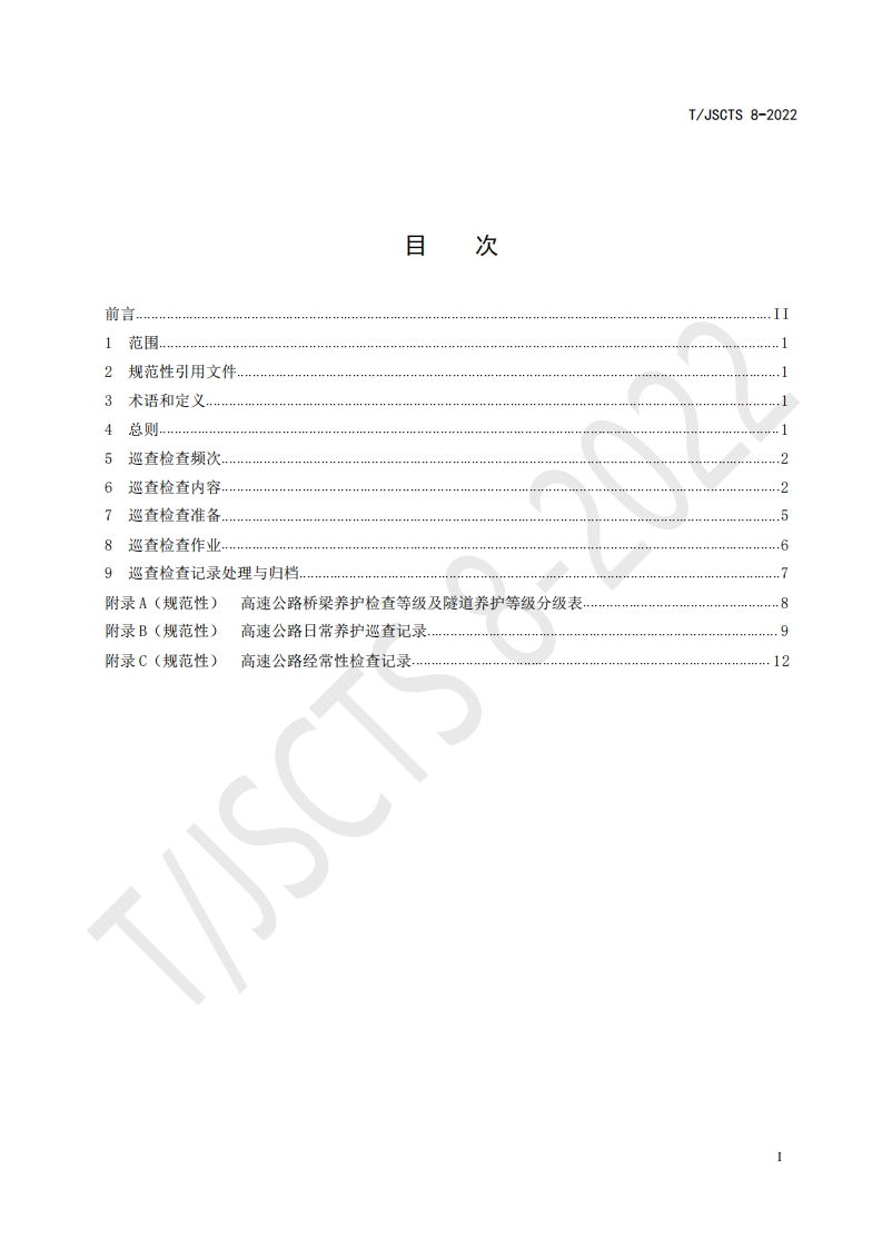 高速公路日常养护巡查及经常性检查作业规程nancepatrolandregularinspectionofOperationproceduresfordailymainteExpressway348072@abc22天前发布关注私信1.09MB21页044高速公路日常养护巡查及经常性检查作业规程nancepatrolandregularinspectionofOperationproceduresfordailymainteExpressway此内容为付费资源,请付费后查看¥19¥23黄金会员免费钻石会员免费立即购买您当前未登录!建议登陆后购买,可保存购买订单付费资源 第1页 / 共21页 第2页 / 共21页 第3页 / 共21页 第4页 / 共21页 第5页 / 共21页 试读已结束,还剩16页,您可下载完整版后进行离线阅读 THE END标准规范 文本预览 ICs93.080.01CCS R 18团体标准T/JSCTS 8-2022高速公路日常养护巡查及经常性检查作业规程Operation procedures for daily maintenance patrol and regular inspection ofExpressway2022-1-17发布2022-3-1实施江苏省综合交通运输学会发布 查看更多 收起部分 喜欢就支持一下吧收藏