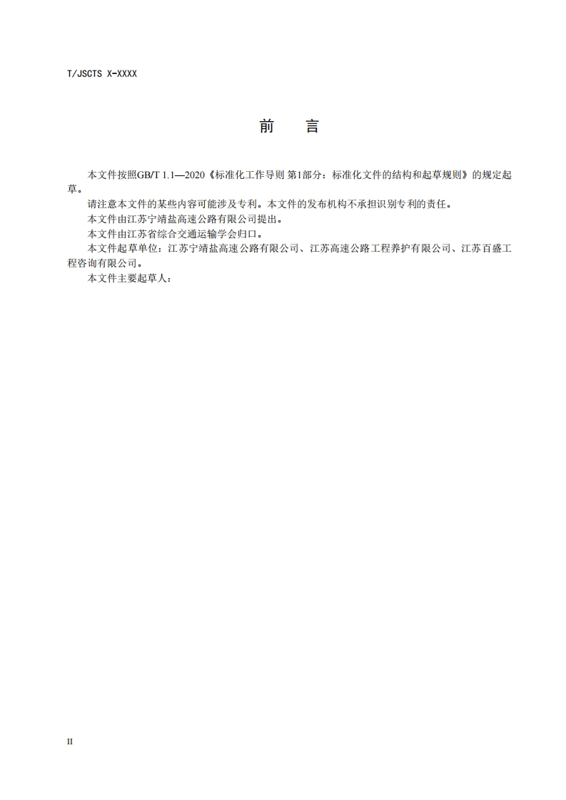 高速公路融雪除雪技术规程Technicalspecificationsforsnowmeltandsnowremovalonhighways求意见稿)(征的相关专利连同支持性文件一并附上在提交反馈意见时请将您知道348072@abc22天前发布关注私信0.34MB12页049高速公路融雪除雪技术规程Technicalspecificationsforsnowmeltandsnowremovalonhighways求意见稿)(征的相关专利连同支持性文件一并附上在提交反馈意见时请将您知道此内容为付费资源,请付费后查看¥19¥23黄金会员免费钻石会员免费立即购买您当前未登录!建议登陆后购买,可保存购买订单付费资源 第1页 / 共12页 第2页 / 共12页 第3页 / 共12页 第4页 / 共12页 第5页 / 共12页 试读已结束,还剩7页,您可下载完整版后进行离线阅读 THE END标准规范 文本预览 1cs93.080.01CCS R 18团体标准T/JSCTS X-XXXX高速公路融雪除雪技术规程Technical specifications for snowmelt and snow removal on highways(征求意见稿)在提交反馈意见时,请将您知道的相关专利连同支持性文件一并附上。XXXX-XX-XX发布XXXX-XX-XX实施江苏省综合交通运输学会发布 查看更多 收起部分 喜欢就支持一下吧收藏