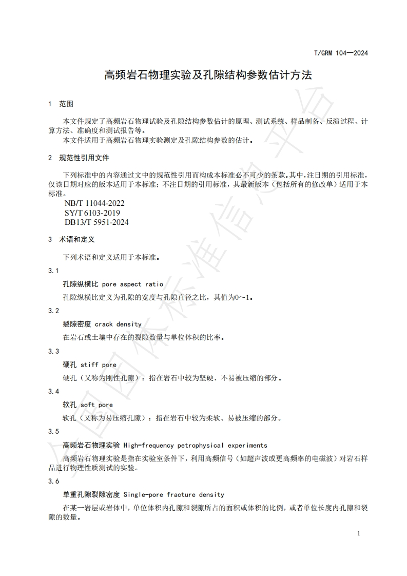 高频岩石物理实验及孔隙结构参数估计方法High-frequencypetrophysicalexperimentsandporestructureparameterestimationmethod348072@abc22天前发布关注私信0.48MB10页035高频岩石物理实验及孔隙结构参数估计方法High-frequencypetrophysicalexperimentsandporestructureparameterestimationmethod此内容为付费资源,请付费后查看¥19¥23黄金会员免费钻石会员免费立即购买您当前未登录!建议登陆后购买,可保存购买订单付费资源 第1页 / 共10页 第2页 / 共10页 第3页 / 共10页 第4页 / 共10页 第5页 / 共10页 试读已结束,还剩5页,您可下载完整版后进行离线阅读 THE END标准规范 文本预览 ICS01.040.75CCS E10/19I/GRM中关村绿色矿山产业联盟团体标准T/GRM104-2024高频岩石物理实验及孔隙结构参数估计方法High-frequency petrophysical experiments and pore structure parameter estimationmethod国团2024-12-27发布2024-12-28实施中关村绿色矿山产业联盟发布发布 查看更多 收起部分 喜欢就支持一下吧收藏