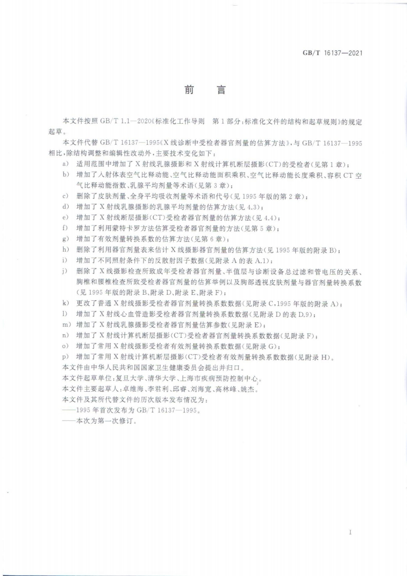 X射线诊断中受检者器官剂量的估算方法MethodsforestimationofexamineesorgandosesinX-raydiagnosis348072@abc22天前发布关注私信15.97MB61页024X射线诊断中受检者器官剂量的估算方法MethodsforestimationofexamineesorgandosesinX-raydiagnosis此内容为付费资源,请付费后查看¥13¥19黄金会员免费钻石会员免费立即购买您当前未登录!建议登陆后购买,可保存购买订单付费资源 第1页 / 共61页 第2页 / 共61页 第3页 / 共61页 第4页 / 共61页 第5页 / 共61页 试读已结束,还剩56页,您可下载完整版后进行离线阅读 THE END标准规范 文本预览 ICS13.280CCS C 57GB中华人民共和国国家标准GB/T16137-2021代替GB/T16137-1995X射线诊断中受检者器官剂量的估算方法Methods for estimation of examinee's organ doses in X-ray diagnosis2021-05-21发布2021-12-01实施Φ国家市场监督管理总局国家标准化管理委员会发布 查看更多 收起部分 喜欢就支持一下吧收藏