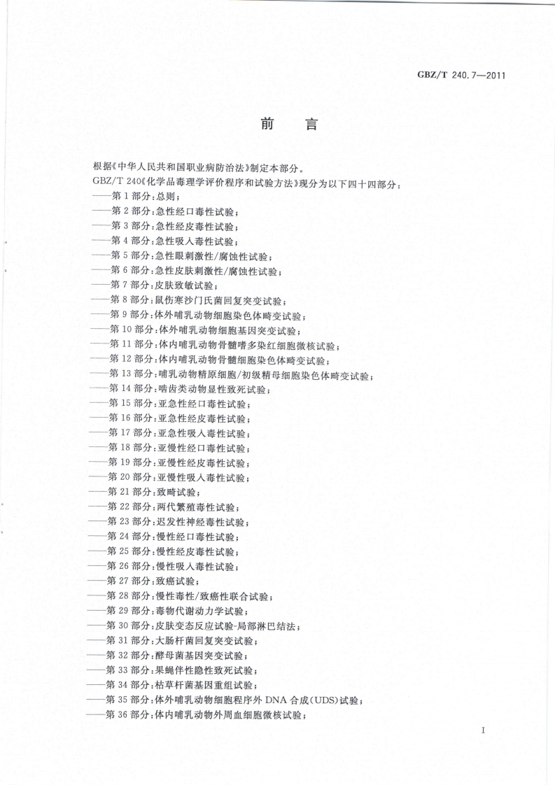 化学品毒理学评价程序和试验方法第7部分_皮肤致敏试验ProceduresandtestsfortoxicologicalevaluationsofchemicalsPart7_Skinsensitizationtest348072@abc4天前发布关注私信3.71MB8页030化学品毒理学评价程序和试验方法第7部分_皮肤致敏试验ProceduresandtestsfortoxicologicalevaluationsofchemicalsPart7_Skinsensitizationtest此内容为付费资源,请付费后查看¥13¥19黄金会员免费钻石会员免费立即购买您当前未登录!建议登陆后购买,可保存购买订单付费资源 第1页 / 共8页 第2页 / 共8页 第3页 / 共8页 第4页 / 共8页 第5页 / 共8页 试读已结束,还剩3页,您可下载完整版后进行离线阅读 THE END标准规范 文本预览 ICS13.100C52GBz中华人民共和国国家职业卫生标准GBZ/T240.7-2011化学品毒理学评价程序和试验方法第7部分:皮肤致敏试验Procedures and tests for toxicological evaluations of chemicals-Part 7:Skin sensitization test2011-08-19发布2012-03-01实施中华人民共和国卫生邵发布数防 查看更多 收起部分 喜欢就支持一下吧收藏
