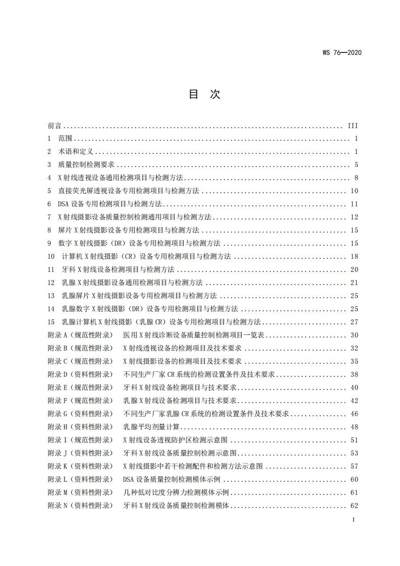 医用X射线诊断设备质量控制检测规范SpecificationfortestingofqualitycontrolinmedicalX-raydiagnosticequipment348072@abc4天前发布关注私信2.20MB74页042医用X射线诊断设备质量控制检测规范SpecificationfortestingofqualitycontrolinmedicalX-raydiagnosticequipment此内容为付费资源,请付费后查看¥13¥19黄金会员免费钻石会员免费立即购买您当前未登录!建议登陆后购买,可保存购买订单付费资源 第1页 / 共74页 第2页 / 共74页 第3页 / 共74页 第4页 / 共74页 第5页 / 共74页 试读已结束,还剩69页,您可下载完整版后进行离线阅读 THE END标准规范 文本预览 ICS13.280057WS中华人民共和国卫生行业标准WS76-2020代替S76一2017等医用X射线诊断设备质量控制检测规范Specification for testing of quality controlin medical X-ray diagnostic equipment2020-10-26发布2021-05-01实施中华人民共和国国家卫生健康委员会发布 查看更多 收起部分 喜欢就支持一下吧收藏