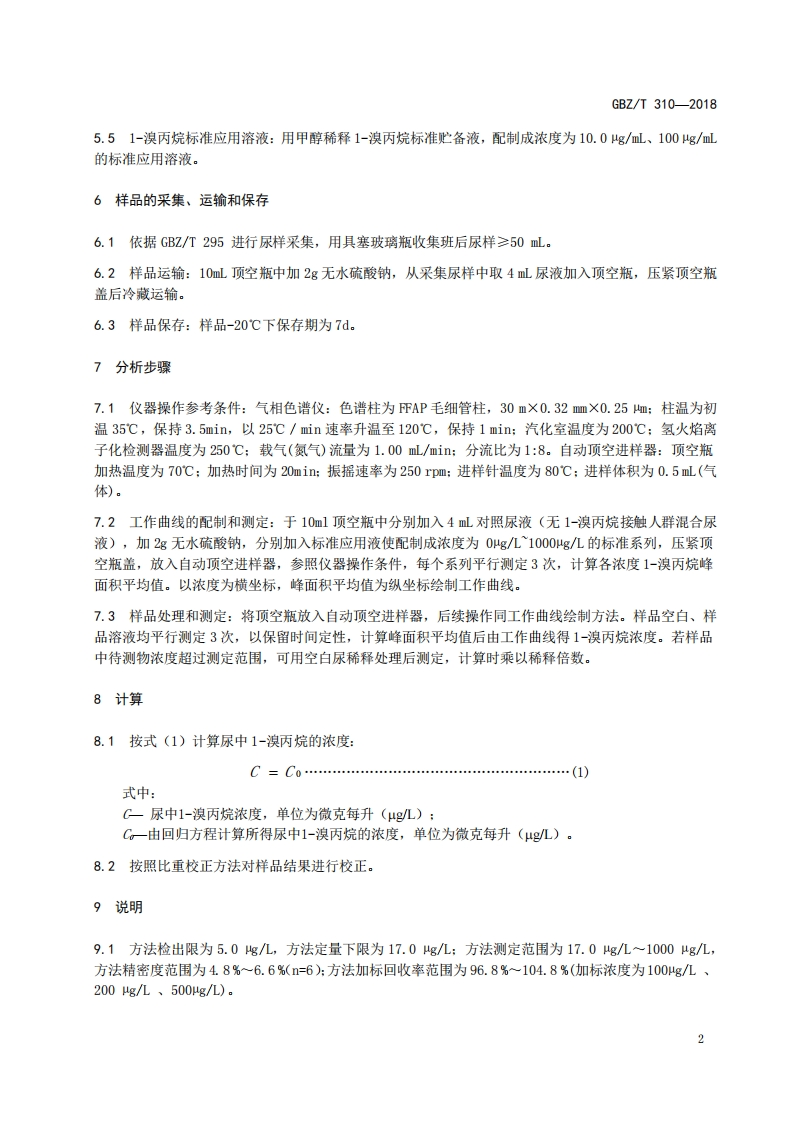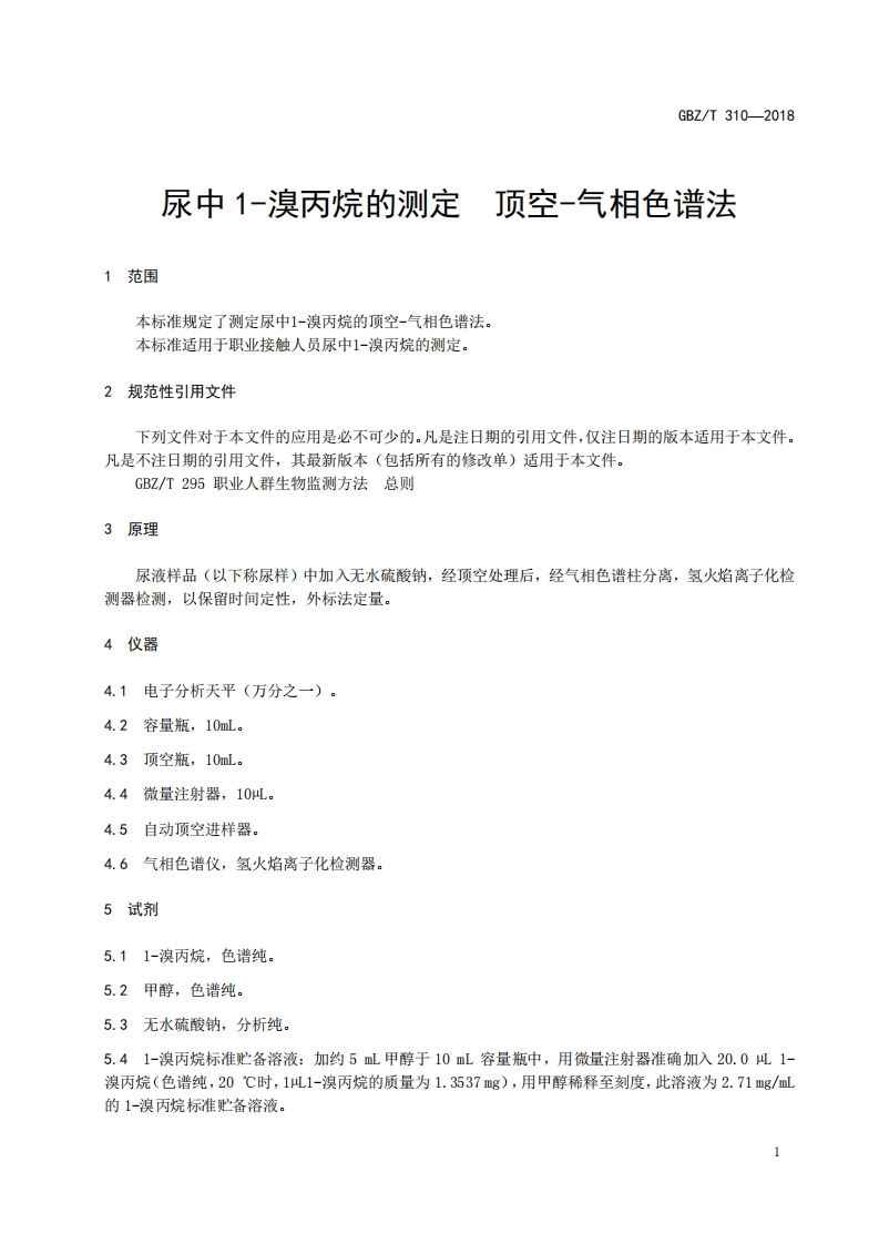 尿中1-溴丙烷的测定顶空-气相色谱法Determinationof1-bromopropaneinurineHeadspace-gaschromatographymethod348072@abc3天前发布关注私信0.30MB5页025尿中1-溴丙烷的测定顶空-气相色谱法Determinationof1-bromopropaneinurineHeadspace-gaschromatographymethod此内容为付费资源,请付费后查看¥13¥19黄金会员免费钻石会员免费立即购买您当前未登录!建议登陆后购买,可保存购买订单付费资源 第1页 / 共5页 第2页 / 共5页 第3页 / 共5页 第4页 / 共5页 第5页 / 共5页 已完成全部阅读,共5页 THE END标准规范 文本预览 ICS13.100C52H8Z中华人民共和国国家职业卫生标准GBZT310-2018尿中1-溴丙烷的测定顶空-气相色谱法Determination of 1-bromopropane in urine-Headspace-gas chromatography method2018-08-16发布2019-01-01实施中华人民共和国国家卫生健康委员会发布 查看更多 收起部分 喜欢就支持一下吧收藏