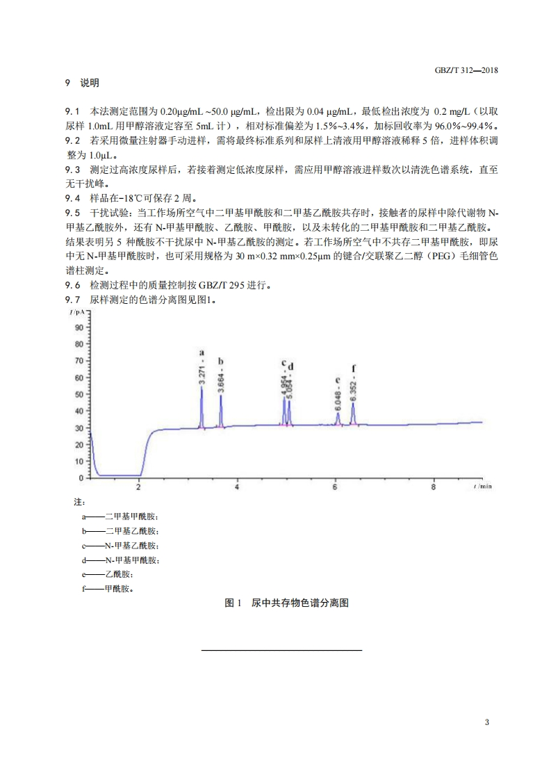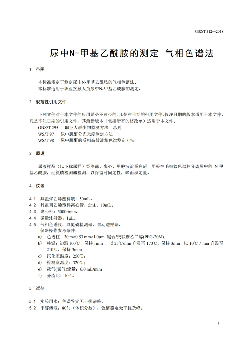 尿中N-甲基乙酰胺的测定气相色谱法DeterminationofN-methylacetamideinurineGaschromatographicmethod348072@abc3天前发布关注私信0.41MB5页043尿中N-甲基乙酰胺的测定气相色谱法DeterminationofN-methylacetamideinurineGaschromatographicmethod此内容为付费资源,请付费后查看¥13¥19黄金会员免费钻石会员免费立即购买您当前未登录!建议登陆后购买,可保存购买订单付费资源 第1页 / 共5页 第2页 / 共5页 第3页 / 共5页 第4页 / 共5页 第5页 / 共5页 已完成全部阅读,共5页 THE END标准规范 文本预览 ICS13.100C52GBZ中华人民共和国国家职业卫生标准GBZT312-2018尿中N-甲基乙酰胺的测定气相色谱法Determination of N-methylacetamide in urine-Gas chromatographic method2018-08-16发布2019-01-01实施中华人民共和国国家卫生健康委员会发布 查看更多 收起部分 喜欢就支持一下吧收藏