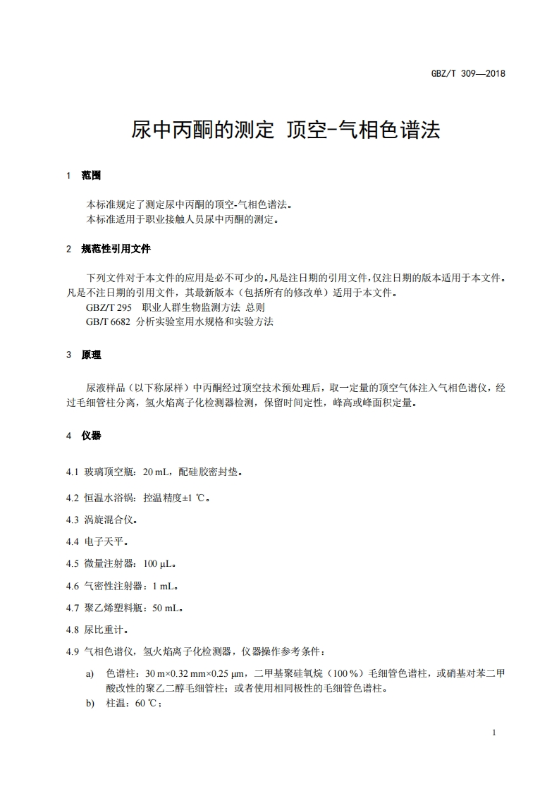 尿中丙酮的测定顶空-气相色谱法DeterminationofacetoneinurineHeadspace-gaschromatographymethod348072@abc3天前发布关注私信0.24MB5页046尿中丙酮的测定顶空-气相色谱法DeterminationofacetoneinurineHeadspace-gaschromatographymethod此内容为付费资源,请付费后查看¥13¥19黄金会员免费钻石会员免费立即购买您当前未登录!建议登陆后购买,可保存购买订单付费资源 第1页 / 共5页 第2页 / 共5页 第3页 / 共5页 第4页 / 共5页 第5页 / 共5页 已完成全部阅读,共5页 THE END标准规范 文本预览 ICS13.100C52HEZ中华人民共和国国家职业卫生标准GBZ/T3092018尿中丙酮的测定顶空气湘色谱法Determination of acetone in urine-Headspace-gas chromatography method2018-08-16发布2019-01-01实施中华人民共和国国家卫生健康委员会发布 查看更多 收起部分 喜欢就支持一下吧收藏