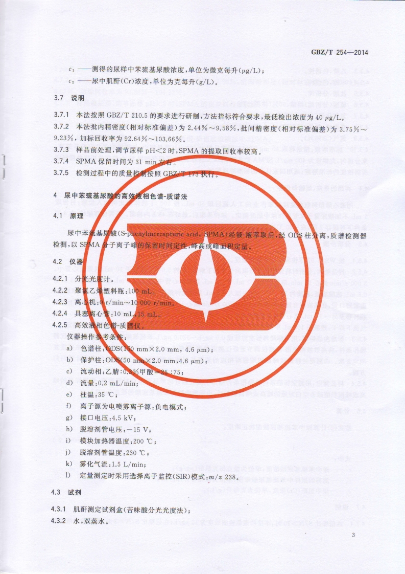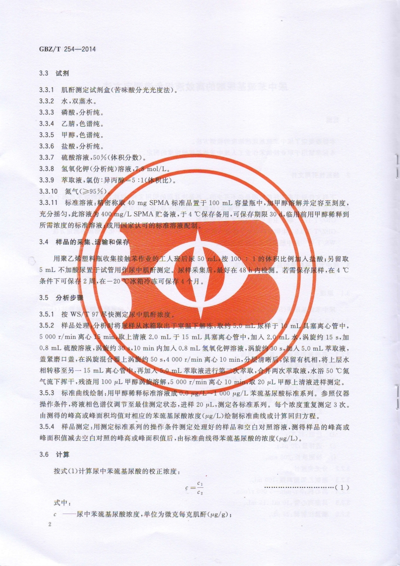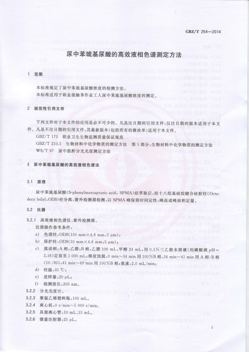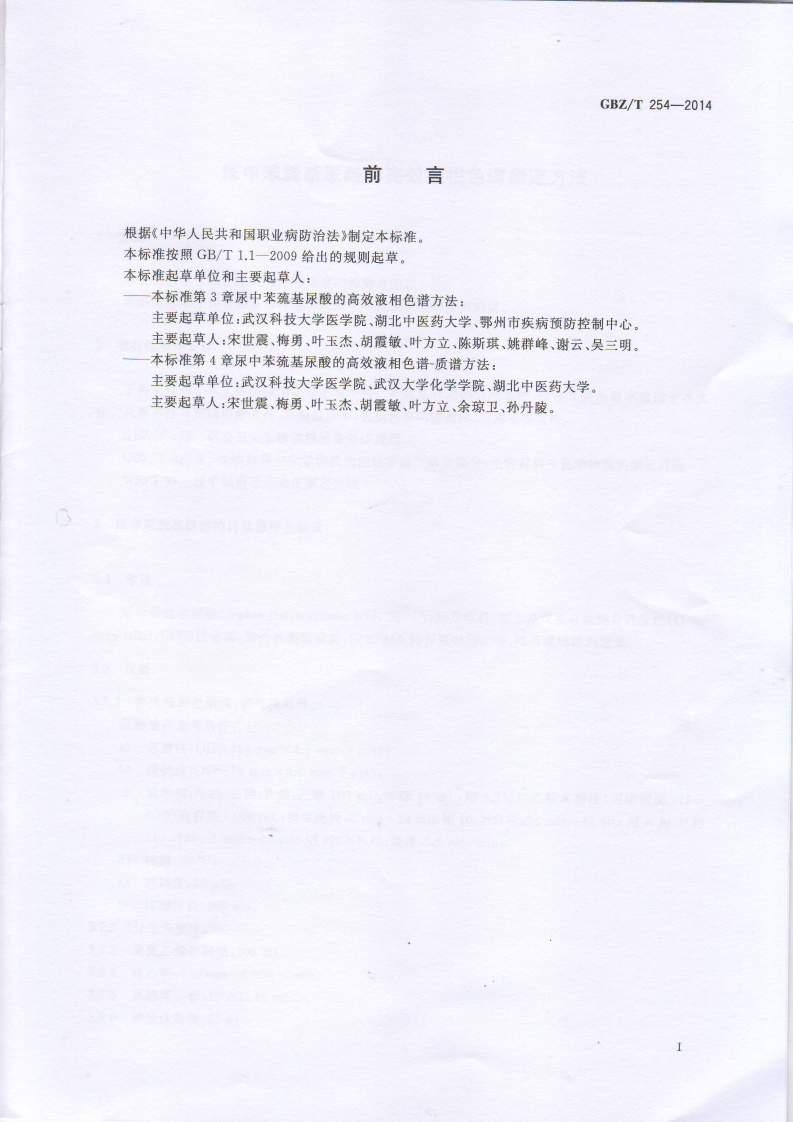 尿中苯统基尿酸的高效液相色谱测定方法DeterminationofS-phenylmercapturicacidinurinebyhighperformanceliquidchromatogrphy348072@abc前天发布关注私信6.73MB8页047尿中苯统基尿酸的高效液相色谱测定方法DeterminationofS-phenylmercapturicacidinurinebyhighperformanceliquidchromatogrphy此内容为付费资源,请付费后查看¥13¥19黄金会员免费钻石会员免费立即购买您当前未登录!建议登陆后购买,可保存购买订单付费资源 第1页 / 共8页 第2页 / 共8页 第3页 / 共8页 第4页 / 共8页 第5页 / 共8页 试读已结束,还剩3页,您可下载完整版后进行离线阅读 THE END标准规范 文本预览 ICS13.100C52GBZ中华人民共和国国家职业卫生标准GBZ/T254-2014尿中苯巯基尿酸的高效液相色谱测定方法Determination of S-phenylmercapturic acid in urine by high performanceliquid chromatogrphy2014-07-23发布2014-12-15实施中华人民共和国国家卫生和计划生育委员会发布Φ 查看更多 收起部分 喜欢就支持一下吧收藏