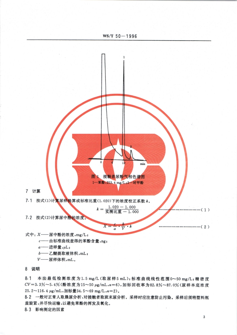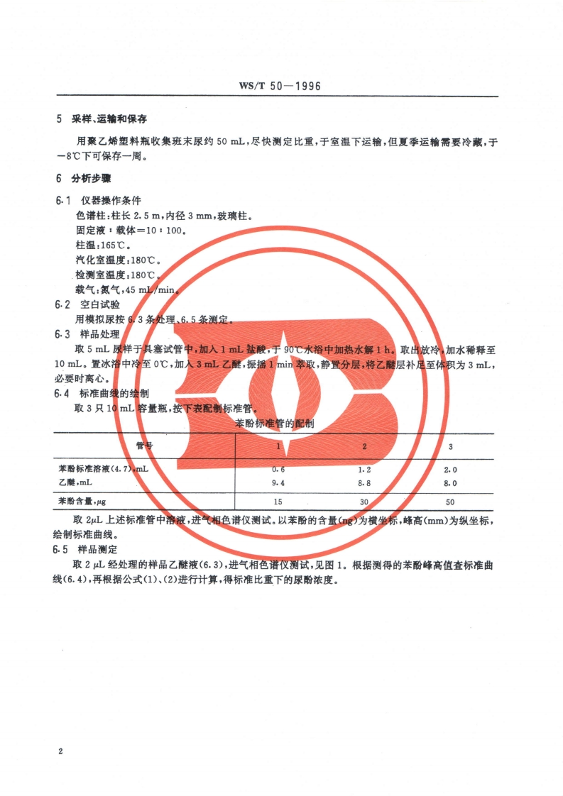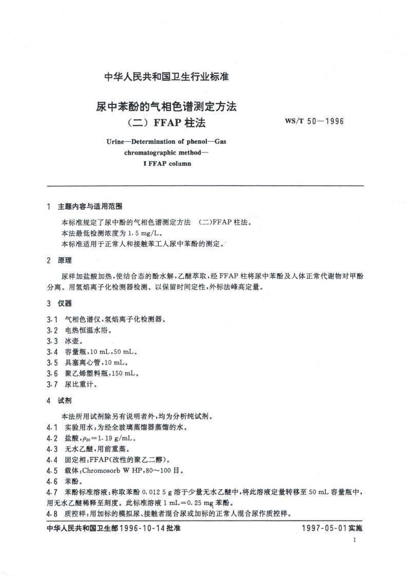 尿中苯酚的气相色谱测定方法二)FFAP柱法Urine-Determinationofphenol-Gaschromatographicmethod-IFFAPcolumn348072@abc前天发布关注私信2MB5页025尿中苯酚的气相色谱测定方法二)FFAP柱法Urine-Determinationofphenol-Gaschromatographicmethod-IFFAPcolumn此内容为付费资源,请付费后查看¥13¥19黄金会员免费钻石会员免费立即购买您当前未登录!建议登陆后购买,可保存购买订单付费资源 第1页 / 共5页 第2页 / 共5页 第3页 / 共5页 第4页 / 共5页 第5页 / 共5页 已完成全部阅读,共5页 THE END标准规范 文本预览 WS中华人民共和国卫生行业标准WS/T50-1996尿中苯酚的气相色谱测定方法(二)FFAP柱法Urine-Determination of phenol-Gaschromatographic method-I FFAP column1996-10-14发布1997-05-01实施Φ中华人民共和国卫生部发布 查看更多 收起部分 喜欢就支持一下吧收藏