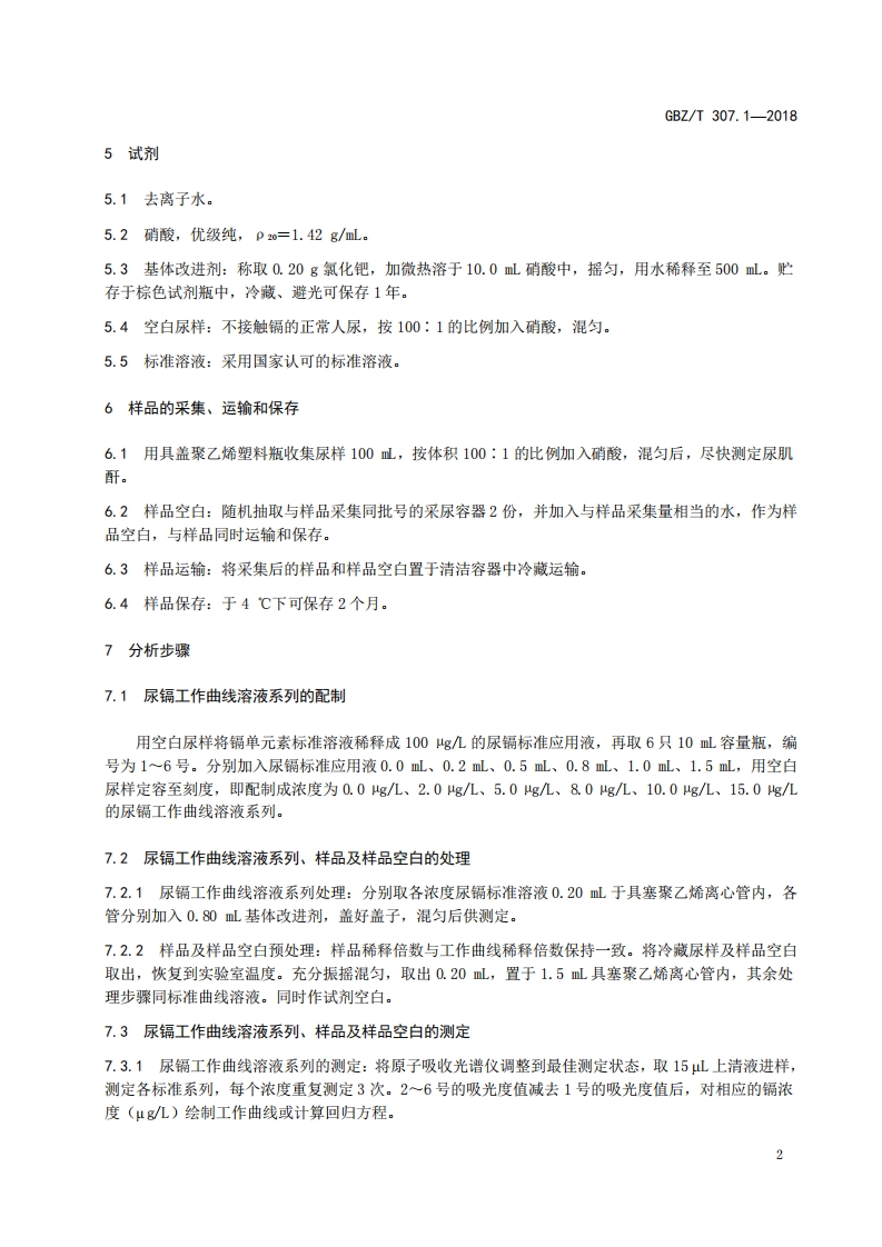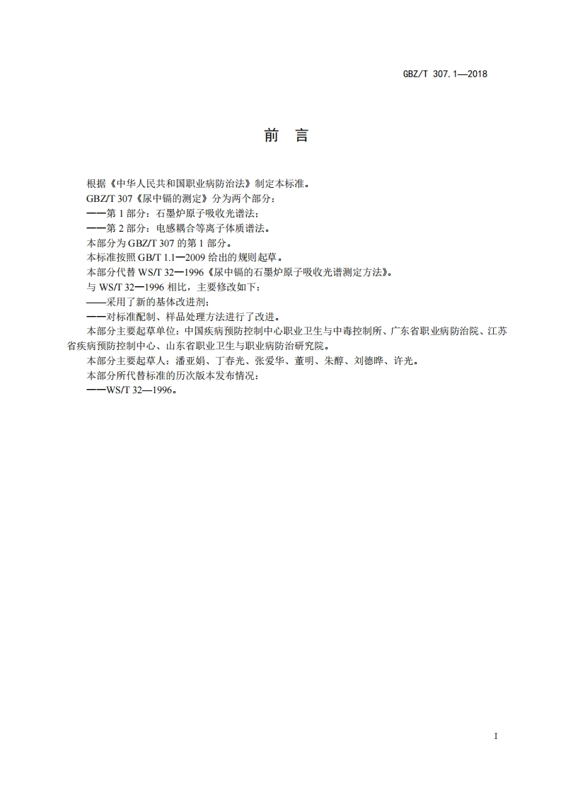 ICS13.100C52FEZ中华人民共和国国家职业卫生标准GBZ/T307.1-2018代替WS/T32一1996尿中镉的测定第1部分:石墨炉原子吸收光谱法Determination of cadmium in urine-Part 1:Graphite furnace atomic absorption spectrometry method2018-08-16发布2019-01-01实施中华人民共和国国家卫生健康委员会发布