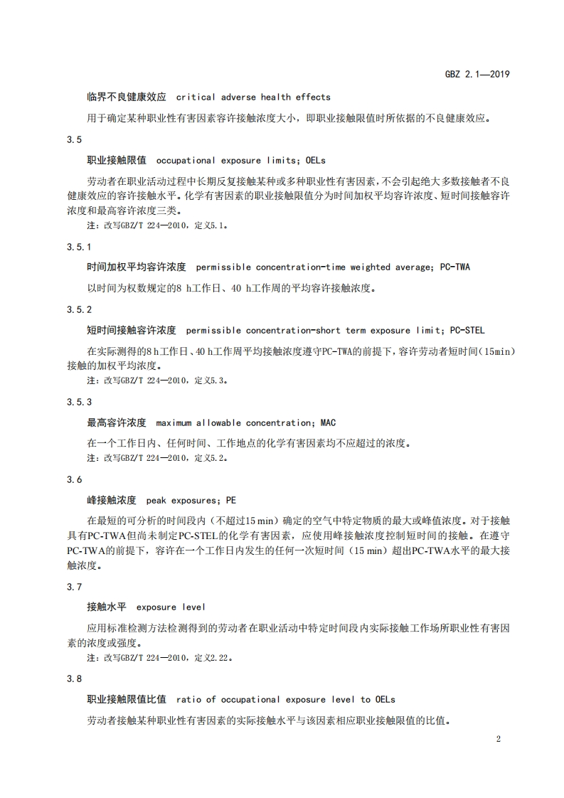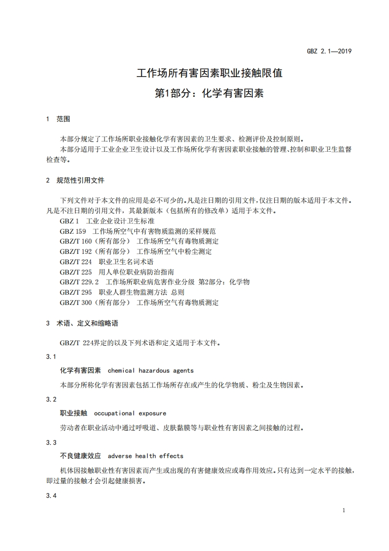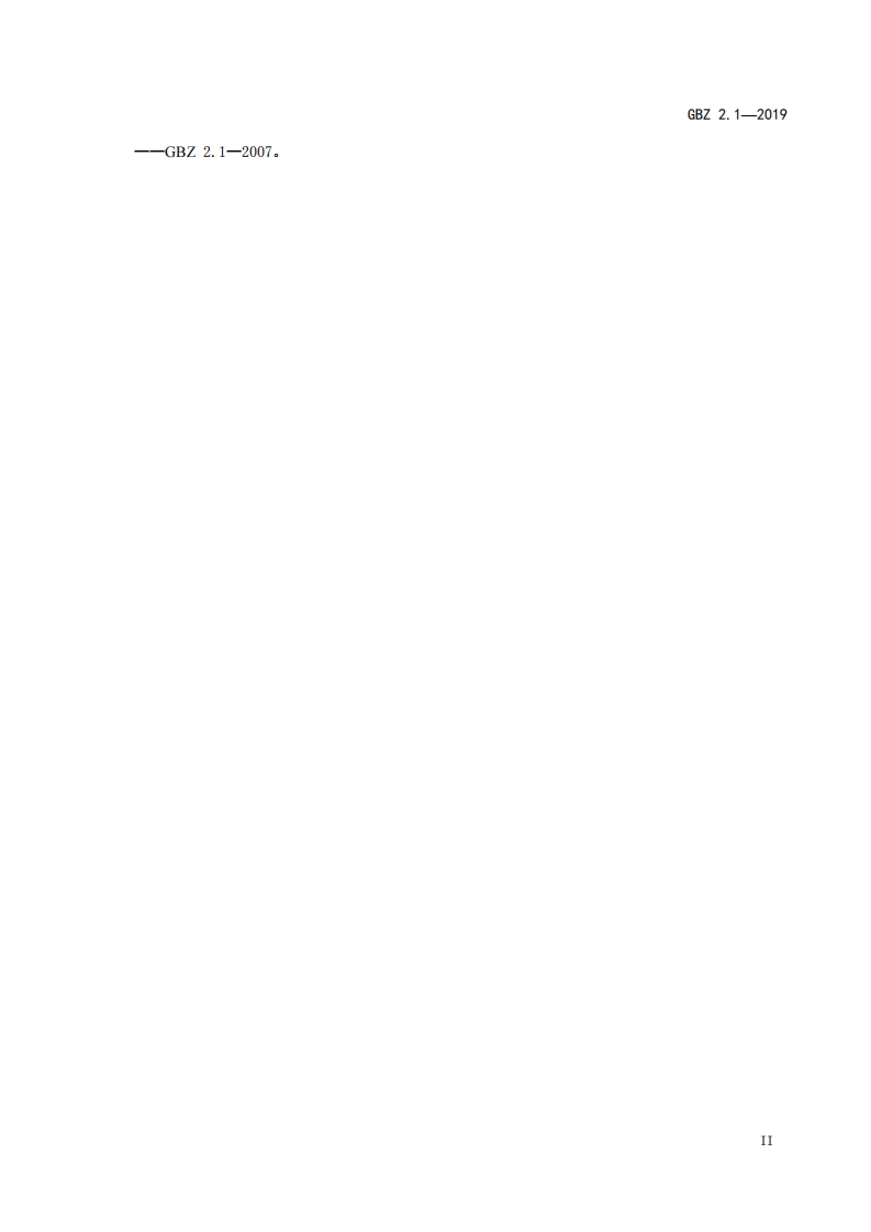 ICS13.100C52GBZ中华人民共和国国家职业卫生标准GBZ2.12019代替GBZ2.1一2007工作场所有害因素职业接触限值第1部分:化学有害因素Occupational exposure limits for hazardous agents in the workplace-Part 1:Chemical hazardous agents2019-08-27发布2020-04-01实施中华人民共和国国家卫生健康委员会发布