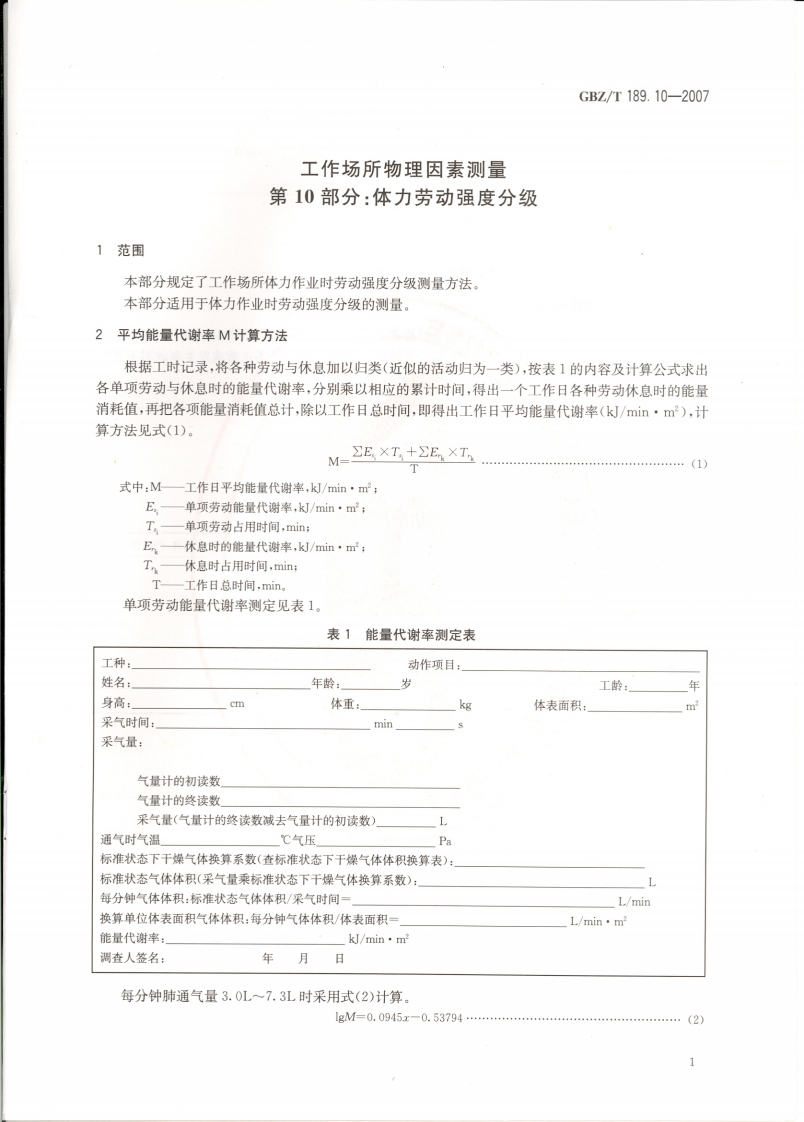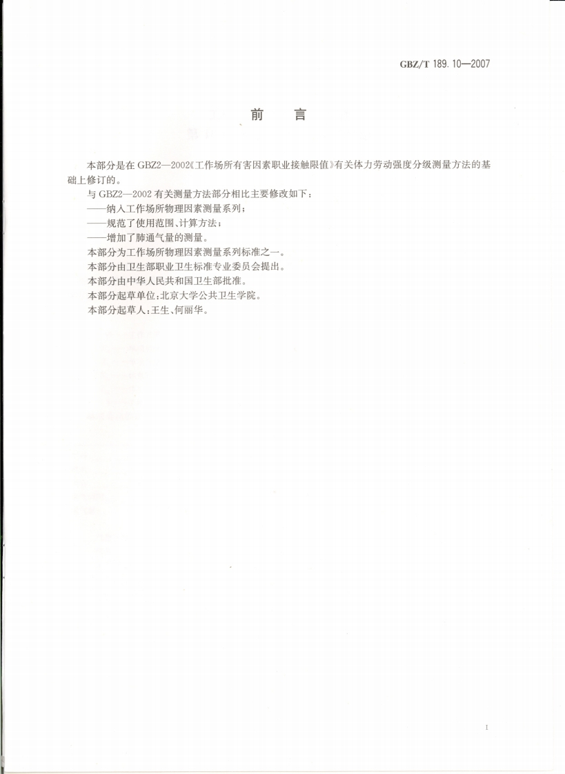 工作场所物理因素测量第10部分_体力劳动强度分级MeasurementofPhysicalAgentsinWorkplacePart10_ClassificationofPhysicalWorkload348072@abc昨天发布关注私信2.54MB6页050工作场所物理因素测量第10部分_体力劳动强度分级MeasurementofPhysicalAgentsinWorkplacePart10_ClassificationofPhysicalWorkload此内容为付费资源,请付费后查看¥13¥19黄金会员免费钻石会员免费立即购买您当前未登录!建议登陆后购买,可保存购买订单付费资源 第1页 / 共6页 第2页 / 共6页 第3页 / 共6页 第4页 / 共6页 第5页 / 共6页 试读已结束,还剩1页,您可下载完整版后进行离线阅读 THE END标准规范 文本预览 ICs13.100C52GBZ中华人民共和国国家职业卫生标准GBZT189.10-2007工作场所物理因素测量第10部分:体力劳动强度分级Measurement of Physical Agents in WorkplacePart 10:Classification of Physical Workload2007-04-12发布2007-11-01实施@人民里4典我极P M P H中华人民共和国卫生邵发布水男 查看更多 收起部分 喜欢就支持一下吧收藏