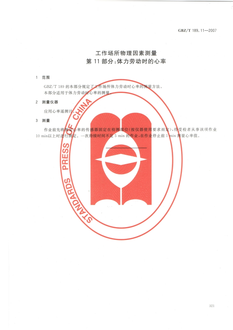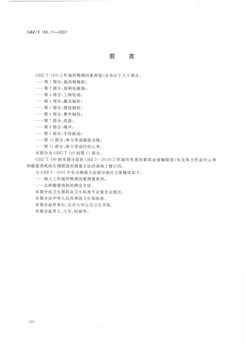 工作场所物理因素测量第11部分_体力劳动时的心率MeasurementofphysicalagentsinworkplacePart11_Heartrateonphysicalwork348072@abc昨天发布关注私信0.92MB3页025工作场所物理因素测量第11部分_体力劳动时的心率MeasurementofphysicalagentsinworkplacePart11_Heartrateonphysicalwork此内容为付费资源,请付费后查看¥13¥19黄金会员免费钻石会员免费立即购买您当前未登录!建议登陆后购买,可保存购买订单付费资源 第1页 / 共3页 第2页 / 共3页 第3页 / 共3页 已完成全部阅读,共3页 THE END标准规范 文本预览 ICS13.100C52GBZ中华人民共和国国家职业卫生标准GBZ/T189.11-2007工作场所物理因素测量第11部分:体力劳动时的心率Measurement of physical agents in workplace-Part 11:Heart rate on physical work2007-04-12发布2007-11-01实施中华人民共和国卫生部发布319 查看更多 收起部分 喜欢就支持一下吧收藏