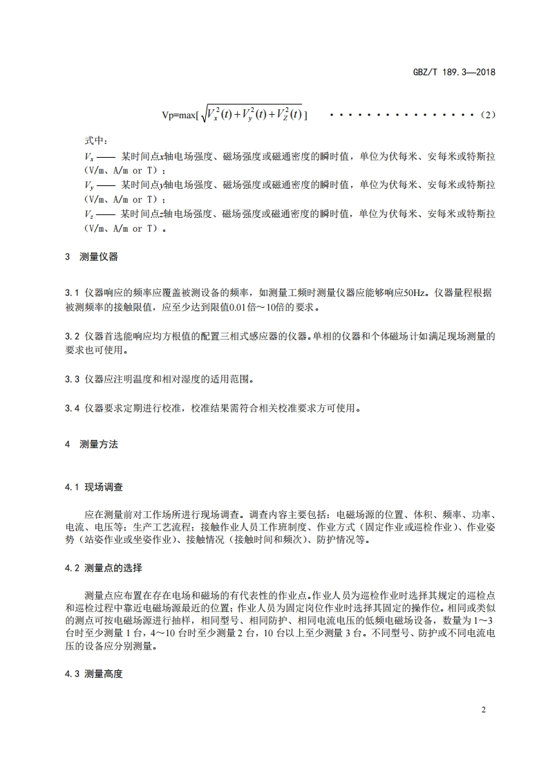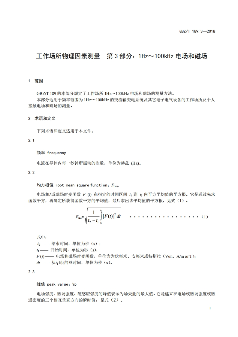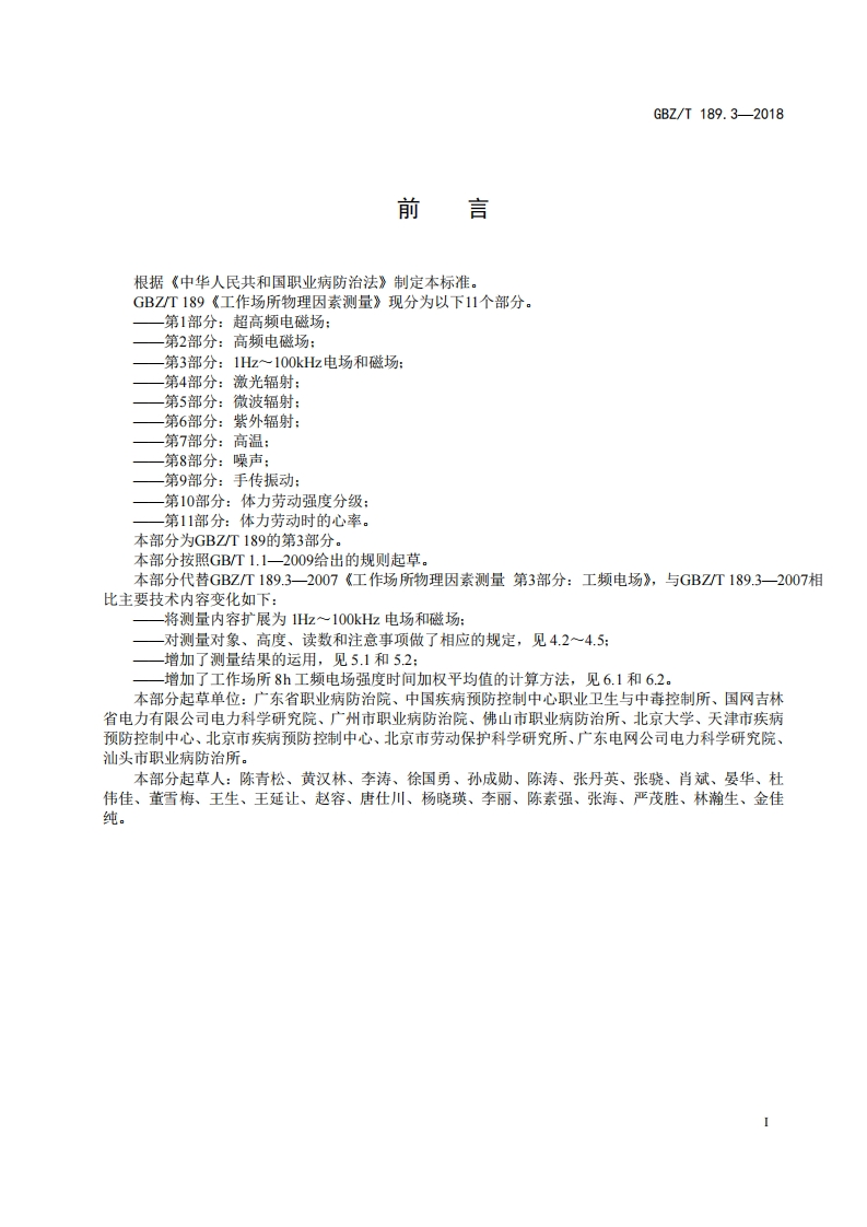 ICS13.100C52GBZ中华人民共和国国家职业卫生标准GBZ/T189.3-2018代替GBZ/T189.3一2007工作场所物理因素测量第3部分:1Hz~100kHz电场和磁场Measurement of physical agents in workplace-Part 3:electric field and magnetic field between 1Hz and 100kHz2018-07-16发布2019-07-01实施中华人民共和国国家卫生健康委员会发布