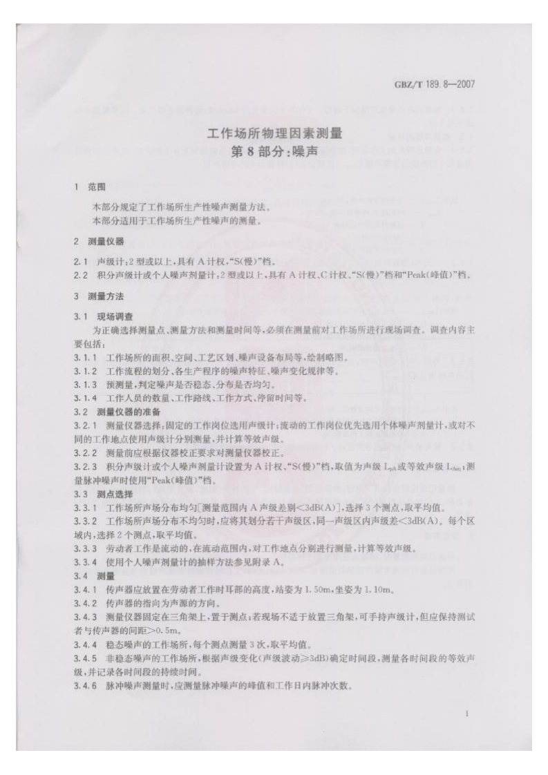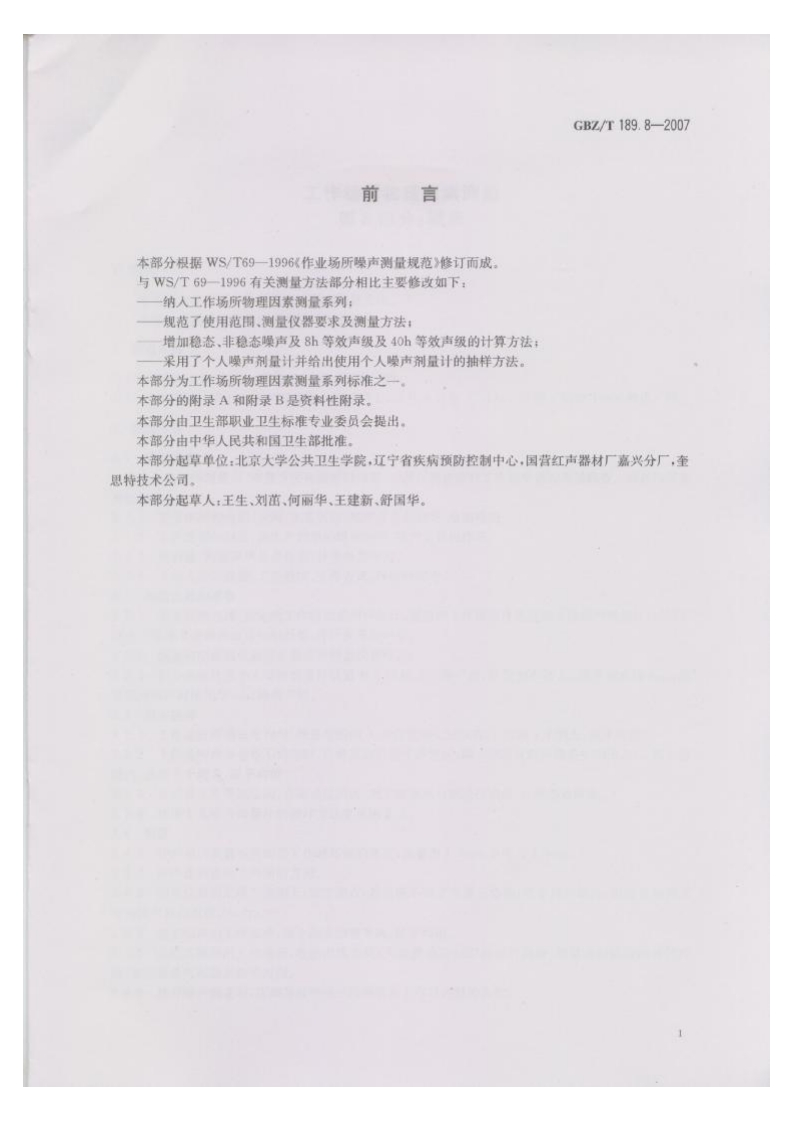 工作场所物理因素测量第8部分_噪声MeasurementofPhysicalAgentsinWorkplacePart8_Noise348072@abc前天发布关注私信0.36MB6页045工作场所物理因素测量第8部分_噪声MeasurementofPhysicalAgentsinWorkplacePart8_Noise此内容为付费资源,请付费后查看¥13¥19黄金会员免费钻石会员免费立即购买您当前未登录!建议登陆后购买,可保存购买订单付费资源 第1页 / 共6页 第2页 / 共6页 第3页 / 共6页 第4页 / 共6页 第5页 / 共6页 试读已结束,还剩1页,您可下载完整版后进行离线阅读 THE END标准规范 文本预览 1CS13.100C52GBZ中华人民共和国国家职业卫生标准GBZ/T189.8-2007工作场所物理因素测量第8部分:噪声Measurement of Physical Agents in WorkplacePart 8:Noise2007-04-12发布2007-11-01实施@人肉宝区生想址十华人民共和国卫生邵发布P MP Hn 查看更多 收起部分 喜欢就支持一下吧收藏