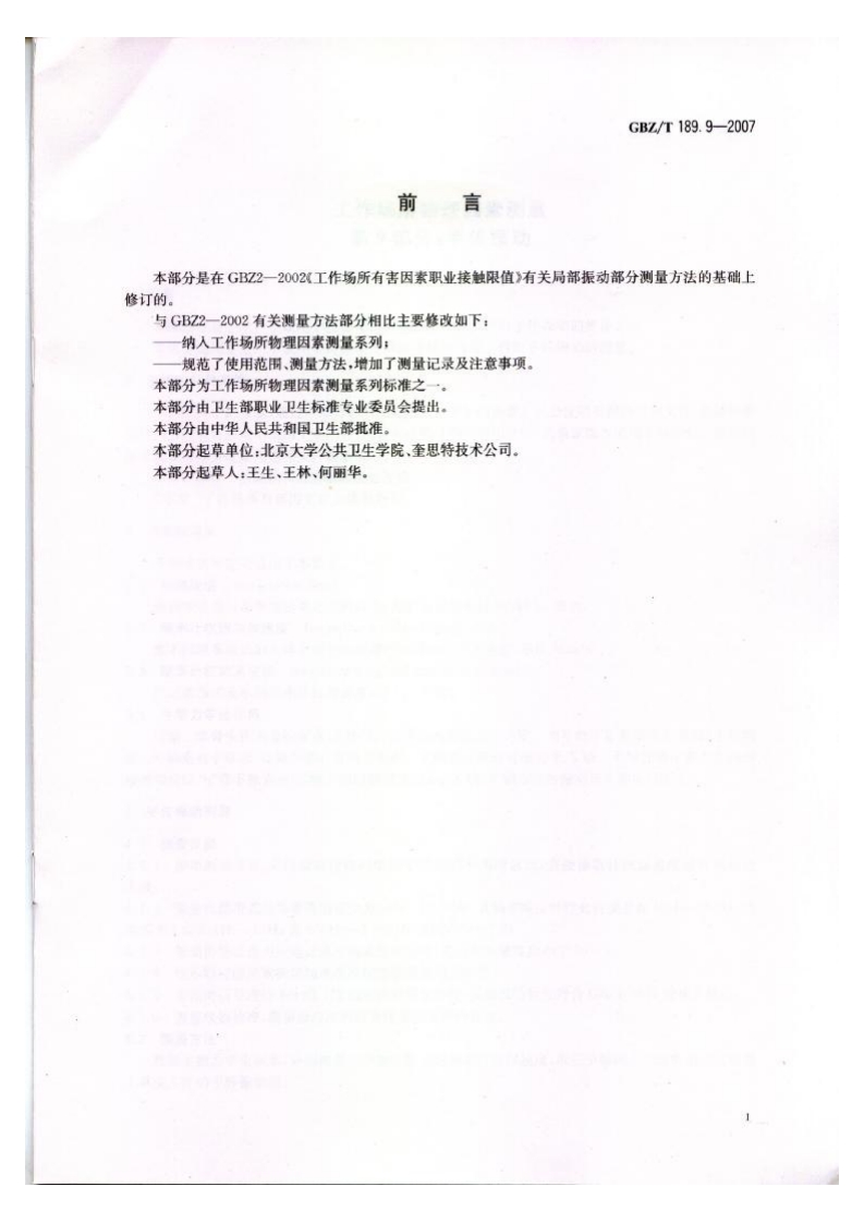 工作场所物理因素测量第9部分_手传振动MeasurementofPhysicalAgentsinWorkplacePart9Hand-transmittedVibration348072@abc前天发布关注私信0.44MB5页027工作场所物理因素测量第9部分_手传振动MeasurementofPhysicalAgentsinWorkplacePart9Hand-transmittedVibration此内容为付费资源,请付费后查看¥13¥19黄金会员免费钻石会员免费立即购买您当前未登录!建议登陆后购买,可保存购买订单付费资源 第1页 / 共5页 第2页 / 共5页 第3页 / 共5页 第4页 / 共5页 第5页 / 共5页 已完成全部阅读,共5页 THE END标准规范 文本预览 ICs13.100c52GBZ中华人民共和国国家职业卫生标准GBZ/T189.9-2007工作场所物理因素测量第9部分:手传振动Measurement of Physical Agents in WorkplacePart 9:Hand-transmitted Vibration2007-04-12发布2007-11-01实施人新电米盐P M P H中华人民共和国卫生部发布 查看更多 收起部分 喜欢就支持一下吧收藏
