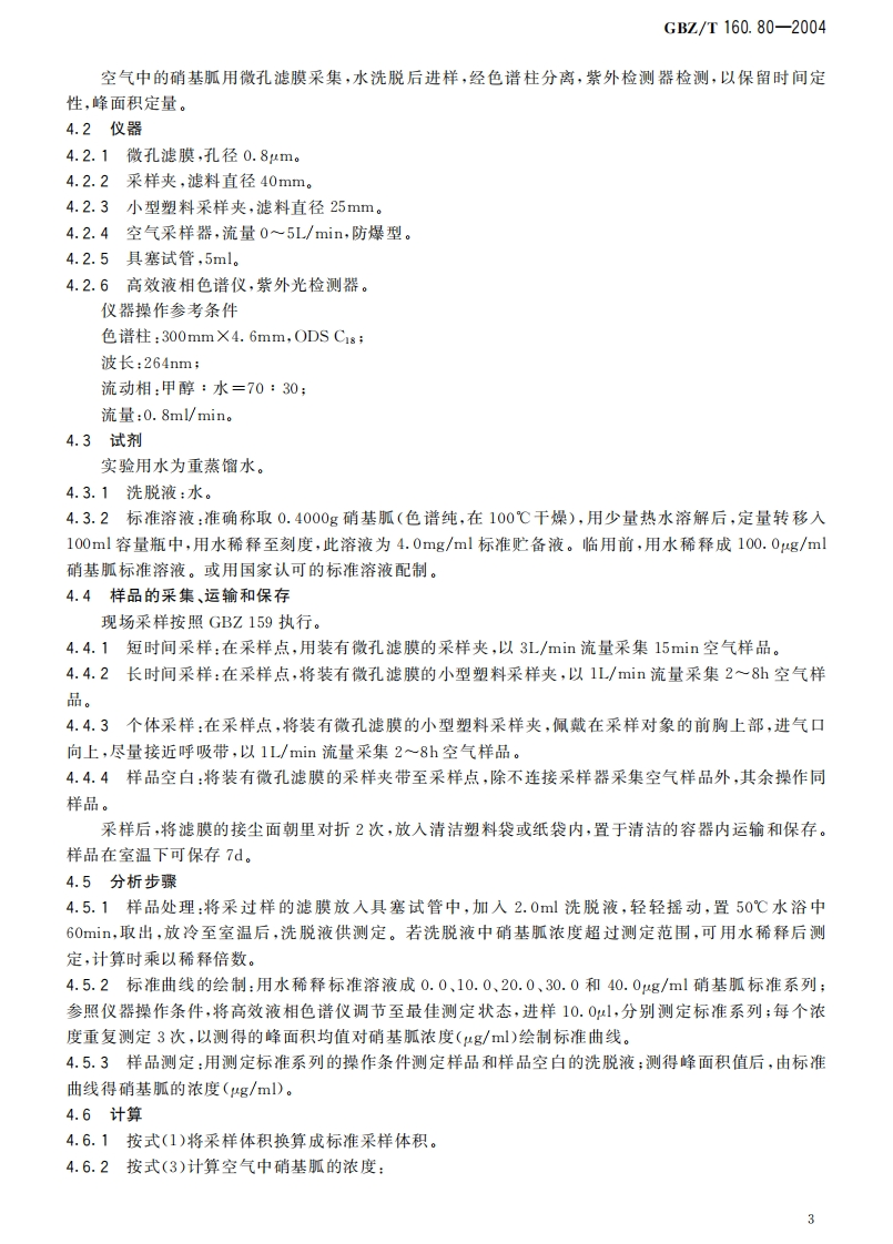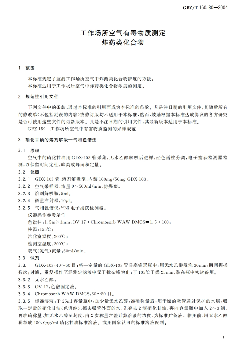 工作场所空气有毒物质测定炸药类化合物Methodsfordeterminationofexplosivesintheairofworkplace348072@abc4天前发布关注私信3MB11页043工作场所空气有毒物质测定炸药类化合物Methodsfordeterminationofexplosivesintheairofworkplace此内容为付费资源,请付费后查看¥13¥19黄金会员免费钻石会员免费立即购买您当前未登录!建议登陆后购买,可保存购买订单付费资源 第1页 / 共11页 第2页 / 共11页 第3页 / 共11页 第4页 / 共11页 第5页 / 共11页 试读已结束,还剩6页,您可下载完整版后进行离线阅读 THE END标准规范 文本预览 1Cs13.100C52GBZ中华人民共和国国家职业卫生标住GBZ/T160.80-2004工作场所空气有毒物质测定炸药类化合物Methods for determination of explosivesin the air of workplace2004-05-21发布2004-12-01实施中华人民共和国卫生邻发布 查看更多 收起部分 喜欢就支持一下吧收藏