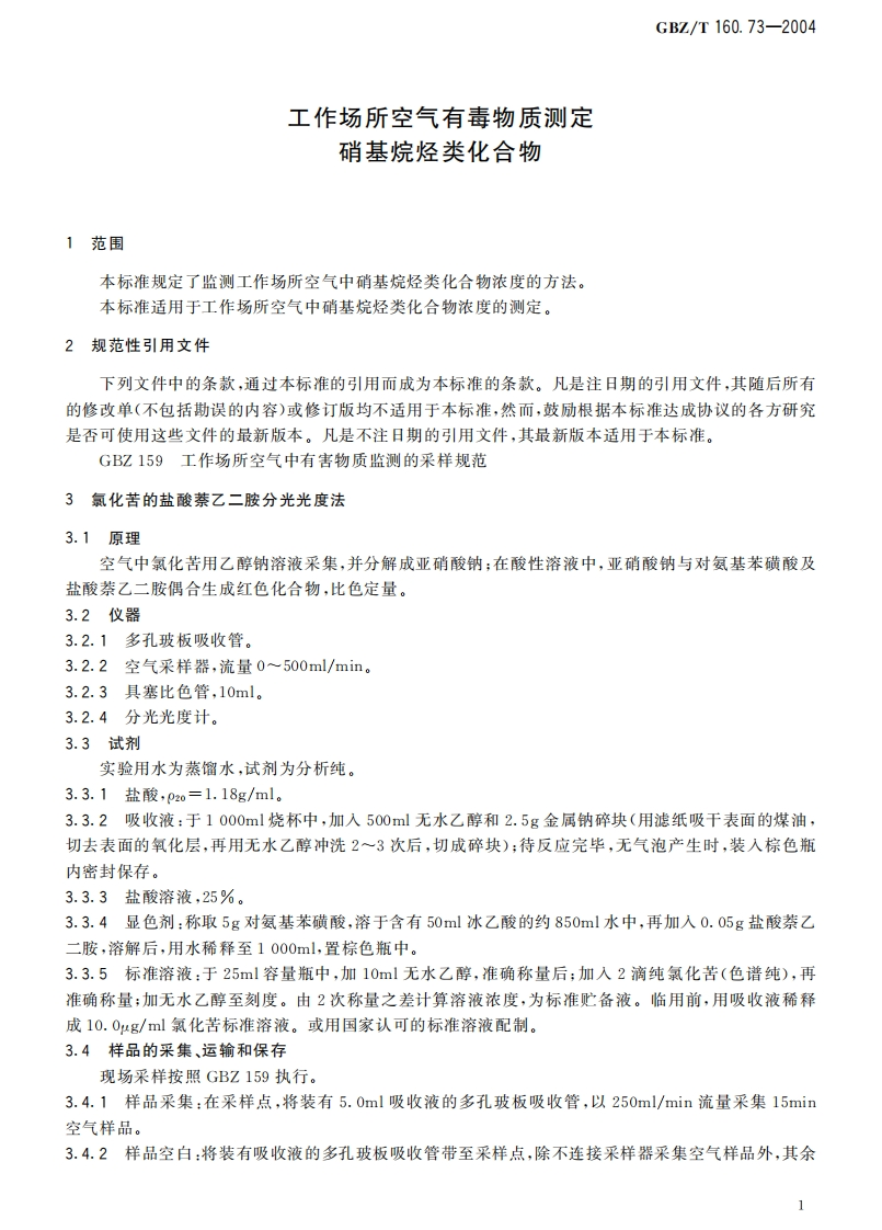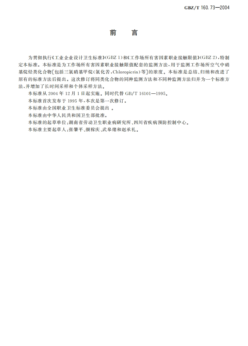 工作场所空气有毒物质测定硝基烷烃类化合物Methodsfordeterminationofnitroalkancesintheairofworkplace348072@abc4天前发布关注私信0.92MB4页036工作场所空气有毒物质测定硝基烷烃类化合物Methodsfordeterminationofnitroalkancesintheairofworkplace此内容为付费资源,请付费后查看¥13¥19黄金会员免费钻石会员免费立即购买您当前未登录!建议登陆后购买,可保存购买订单付费资源 第1页 / 共4页 第2页 / 共4页 第3页 / 共4页 第4页 / 共4页 已完成全部阅读,共4页 THE END标准规范 文本预览 1Cs13.100C52GBZ中华人民共和国国家职业卫生标住GBZ/T160.73-2004工作场所空气有毒物质测定硝基烷烃类化合物Methods for determination of nitro alkancesin the air of workplace2004-05-21发布2004-12-01实施中华人民共和国卫生邻发布 查看更多 收起部分 喜欢就支持一下吧收藏