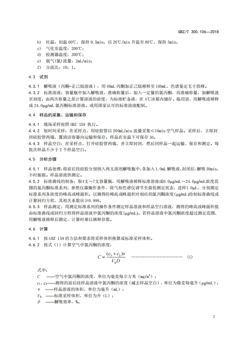 工作场所空气有毒物质测定第106部分_氯丙酮Determinationoftoxicsubstancesinworkplaceair-Part106_Chloroacetone348072@abc5天前发布关注私信0.35MB5页030工作场所空气有毒物质测定第106部分_氯丙酮Determinationoftoxicsubstancesinworkplaceair-Part106_Chloroacetone此内容为付费资源,请付费后查看¥13¥19黄金会员免费钻石会员免费立即购买您当前未登录!建议登陆后购买,可保存购买订单付费资源 第1页 / 共5页 第2页 / 共5页 第3页 / 共5页 第4页 / 共5页 第5页 / 共5页 已完成全部阅读,共5页 THE END标准规范 文本预览 ICS13.100C52HBZ中华人民共和国国家职业卫生标准GBZ/T300.106-2018工作场所空气有毒物质测定第106部分:氯丙酮Determination of toxic substances in workplace air-Part 106:Chloroacetone2018-07-16发布2019-07-01实施中华人民共和国国家卫生健康委员会发布 查看更多 收起部分 喜欢就支持一下吧收藏