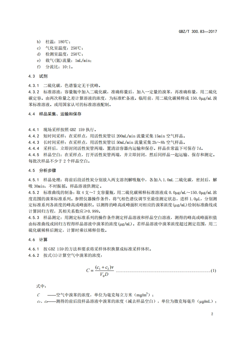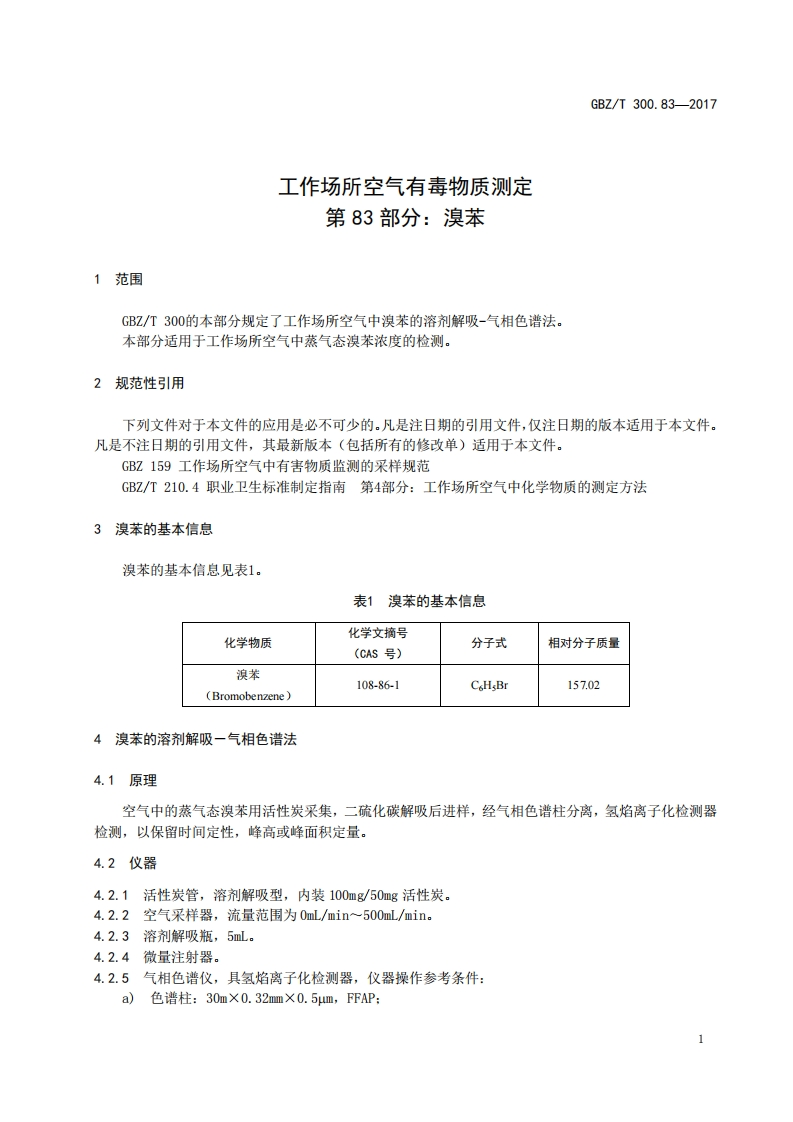 工作场所空气有毒物质测定第83部分_溴苯Determinationoftoxicsubstancesinworkplaceair-Part83_Bromobenzene348072@abc12天前发布关注私信0.38MB5页050工作场所空气有毒物质测定第83部分_溴苯Determinationoftoxicsubstancesinworkplaceair-Part83_Bromobenzene此内容为付费资源,请付费后查看¥13¥19黄金会员免费钻石会员免费立即购买您当前未登录!建议登陆后购买,可保存购买订单付费资源 第1页 / 共5页 第2页 / 共5页 第3页 / 共5页 第4页 / 共5页 第5页 / 共5页 已完成全部阅读,共5页 THE END标准规范 文本预览 ICS13.100C52FEZ中华人民共和国国家职业卫生标准GBZT300.83-2017部分代替GBZ/T160.47一2004工作场所空气有毒物质测定第83部分:溴苯Determination of toxic substances in workplace air-Part 83:Bromobenzene2017-11-09发布2018-05-01实施中华人民共和国国家卫生和计划生育委员会发布 查看更多 收起部分 喜欢就支持一下吧收藏