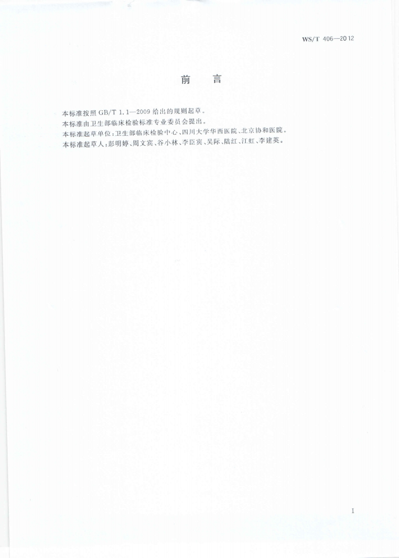 WST406-2012临床血液学检验常规项目分析质量要求348072@abc2个月前发布关注私信4.75MB12页0299WST406-2012临床血液学检验常规项目分析质量要求此内容为付费资源,请付费后查看¥17¥32黄金会员免费钻石会员免费立即购买您当前未登录!建议登陆后购买,可保存购买订单付费资源 第1页 / 共12页 第2页 / 共12页 试读已结束,还剩10页,您可下载完整版后进行离线阅读 © 版权声明文章版权归作者所有,未经允许请勿转载。THE END标准规范 文本预览 1CS11.100C50WS中华人民共和国卫生行业标准WS/T406-2012临床血液学检验常规项目分析质量要求Analytical quality specifications for routine tests in clinical hematology2012-12-25发布2013-08-01实施中华人民共和国卫生部发布 查看更多 收起部分 喜欢就支持一下吧点赞9 分享QQ空间微博QQ好友海报分享复制链接收藏