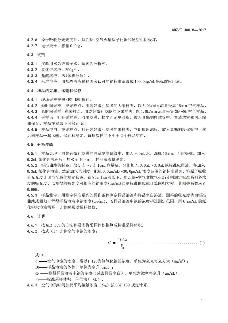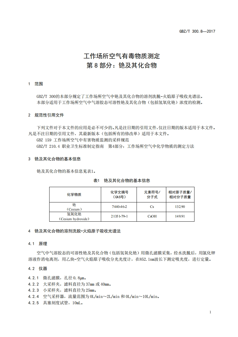 工作场所空气有毒物质测定第8部分_铯及其化合物Determinationoftoxicsubstancesinworkplaceair-Part8_Cesiumanditscompounds348072@abc12天前发布关注私信0.27MB5页032工作场所空气有毒物质测定第8部分_铯及其化合物Determinationoftoxicsubstancesinworkplaceair-Part8_Cesiumanditscompounds此内容为付费资源,请付费后查看¥13¥19黄金会员免费钻石会员免费立即购买您当前未登录!建议登陆后购买,可保存购买订单付费资源 第1页 / 共5页 第2页 / 共5页 第3页 / 共5页 第4页 / 共5页 第5页 / 共5页 已完成全部阅读,共5页 THE END标准规范 文本预览 ICS13.100C52GBZ中华人民共和国国家职业卫生标准GBZ/T300.8-2017工作场所空气有毒物质测定第8部分:铯及其化合物Determination of toxic substances in workplace air-Part 8:Cesium and its compounds2017-11-09发布2018-05-01实施中华人民共和国国家卫生和计划生育委员会发布 查看更多 收起部分 喜欢就支持一下吧收藏