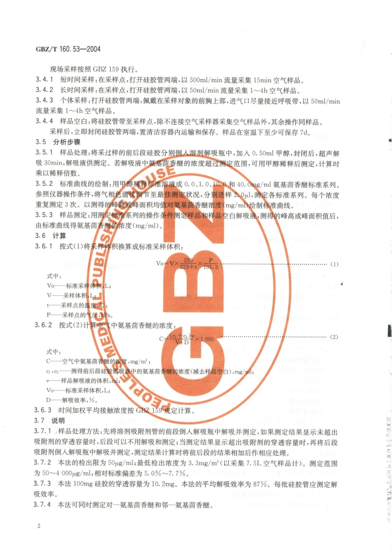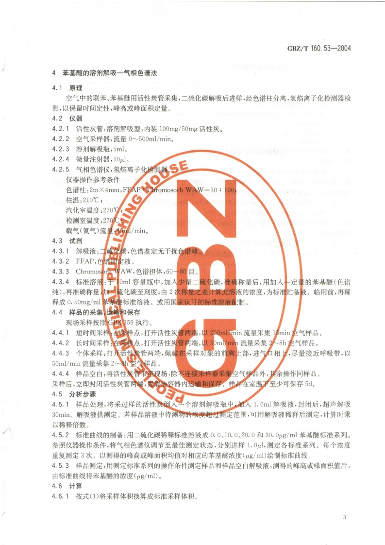 工作场所空气有毒物质测定苯基醚类化合物Methodsfordeterminationofphenylethersintheairofworkplace348072@abc13天前发布关注私信2.57MB6页042工作场所空气有毒物质测定苯基醚类化合物Methodsfordeterminationofphenylethersintheairofworkplace此内容为付费资源,请付费后查看¥13¥19黄金会员免费钻石会员免费立即购买您当前未登录!建议登陆后购买,可保存购买订单付费资源 第1页 / 共6页 第2页 / 共6页 第3页 / 共6页 第4页 / 共6页 第5页 / 共6页 试读已结束,还剩1页,您可下载完整版后进行离线阅读 THE END标准规范 文本预览 ICs13.100C52GBZ中华人民共和国国家职业卫生标准GBZ/T160.53-2004工作场所空气有毒物质测定苯基醚类化合物Methods for determination of phenyl ethersin the air of workplace2004-05-21发布2004-12-01实施中华人民共和国卫生邻发布 查看更多 收起部分 喜欢就支持一下吧收藏