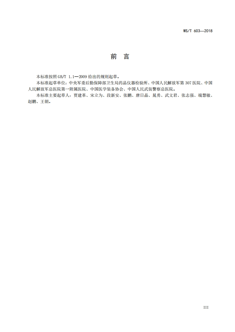 WST603-2018心脏除颤器安全管理标准348072@abc4个月前发布关注私信0.27MB9页028WST603-2018心脏除颤器安全管理标准此内容为付费资源,请付费后查看¥17¥32黄金会员免费钻石会员免费立即购买您当前未登录!建议登陆后购买,可保存购买订单付费资源 第1页 / 共9页 第2页 / 共9页 试读已结束,还剩7页,您可下载完整版后进行离线阅读 THE END标准规范 文本预览 ICS11.020C05WS中华人民共和国卫生行业标准WS/T603—2018心脏除颤器安全管理Safety Management for cardiac defibrillator2018-08-17发布2019-08-01实施中华人民共和国国家卫生健康委员会发布 查看更多 收起部分 喜欢就支持一下吧收藏
