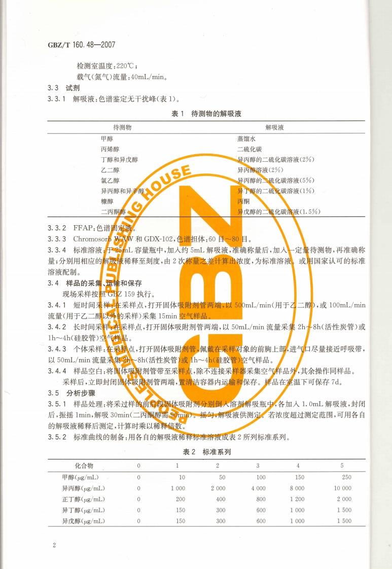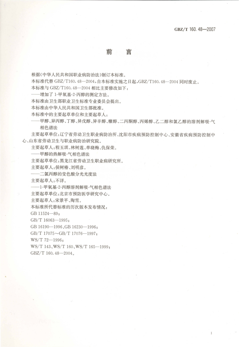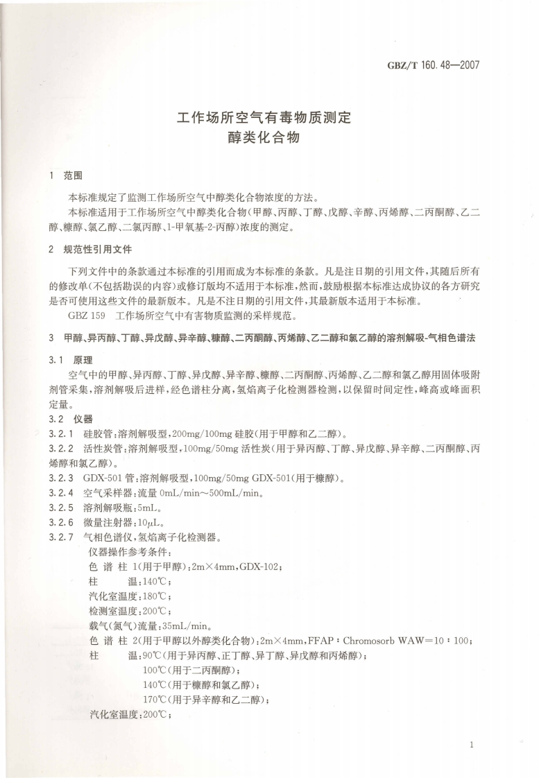 工作场所空气有毒物质测定醇类化合物Determinationofalcoholsintheairofworkplace348072@abc14天前发布关注私信5.33MB11页031工作场所空气有毒物质测定醇类化合物Determinationofalcoholsintheairofworkplace此内容为付费资源,请付费后查看¥13¥19黄金会员免费钻石会员免费立即购买您当前未登录!建议登陆后购买,可保存购买订单付费资源 第1页 / 共11页 第2页 / 共11页 第3页 / 共11页 第4页 / 共11页 第5页 / 共11页 试读已结束,还剩6页,您可下载完整版后进行离线阅读 THE END标准规范 文本预览 ICs13.100c52GBZ中华人民共和国国家职业卫生标住GBZ/T160.48-2007代替GBZ/T160.48-2004工作场所空气有毒物质测定醇类化合物Determination of alcohols in the air of workplace2007-06-13发布2007-11-30实施@十中华人民共和国卫生邵发布P M P H酒水用玉 查看更多 收起部分 喜欢就支持一下吧收藏
