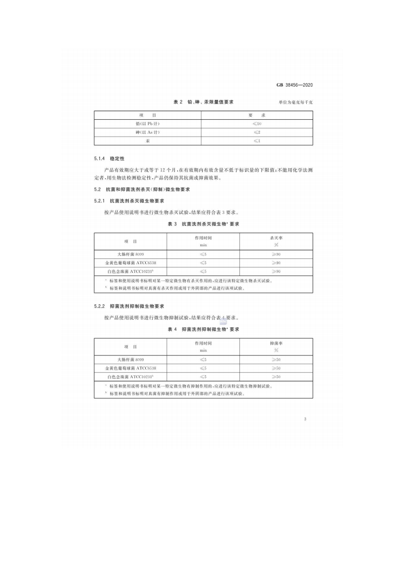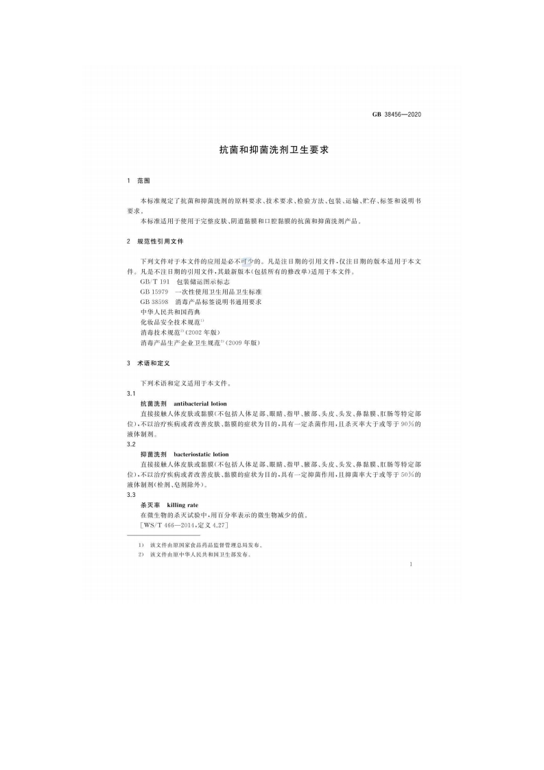 抗菌和抑菌洗剂卫生要求Hygienicrequirementsforantibacterialandbacteriostaticlotion348072@abc14天前发布关注私信0.95MB9页046抗菌和抑菌洗剂卫生要求Hygienicrequirementsforantibacterialandbacteriostaticlotion此内容为付费资源,请付费后查看¥13¥19黄金会员免费钻石会员免费立即购买您当前未登录!建议登陆后购买,可保存购买订单付费资源 第1页 / 共9页 第2页 / 共9页 第3页 / 共9页 第4页 / 共9页 第5页 / 共9页 试读已结束,还剩4页,您可下载完整版后进行离线阅读 THE END标准规范 文本预览 1C11.080C50GB中华人民共和国国家标准GB38456-2020抗菌和抑菌洗剂卫生要求Hygienic requirements for antibacterial and bacteriostatic lotion2020-11-17发布2021-12-01实施国家市场监背管踝稳员发布国家标准化管理委员会 查看更多 收起部分 喜欢就支持一下吧收藏