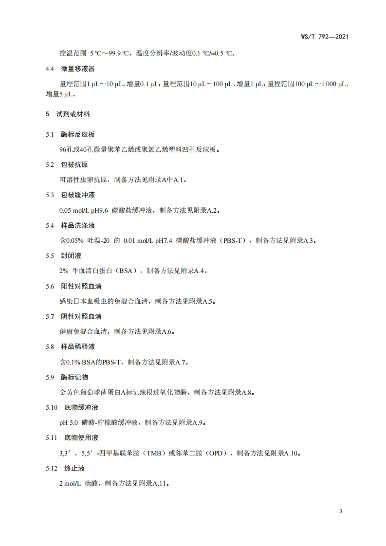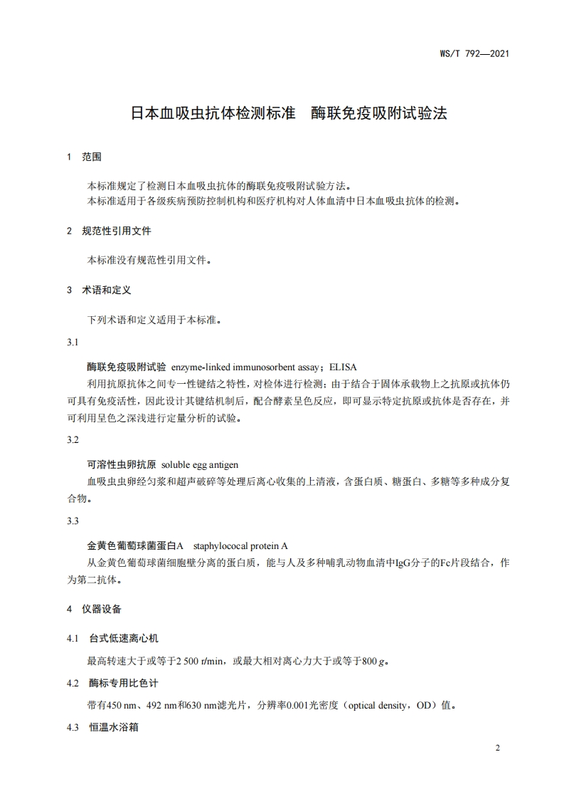 日本血吸虫抗体检测标准酶联免疫吸附试验法DetectionstandardofantibodyagainstSchistosomajaponicum-Enzyme-linkedimmunosorbentassay348072@abc15天前发布关注私信0.38MB10页037日本血吸虫抗体检测标准酶联免疫吸附试验法DetectionstandardofantibodyagainstSchistosomajaponicum-Enzyme-linkedimmunosorbentassay此内容为付费资源,请付费后查看¥13¥19黄金会员免费钻石会员免费立即购买您当前未登录!建议登陆后购买,可保存购买订单付费资源 第1页 / 共10页 第2页 / 共10页 第3页 / 共10页 第4页 / 共10页 第5页 / 共10页 试读已结束,还剩5页,您可下载完整版后进行离线阅读 THE END标准规范 文本预览 ICs11.020CCS C61中华人民共和国卫生行业标准WS/T792-2021g日本血吸虫抗体检测标准酶联免疫吸附试验法Detection standard of antibody against Schistosoma japonicumEnzyme-linkedimmunosorbent assay2021一11一23发布2022—05—01实施中华人民共和国国家卫生健康委员会发布 查看更多 收起部分 喜欢就支持一下吧收藏