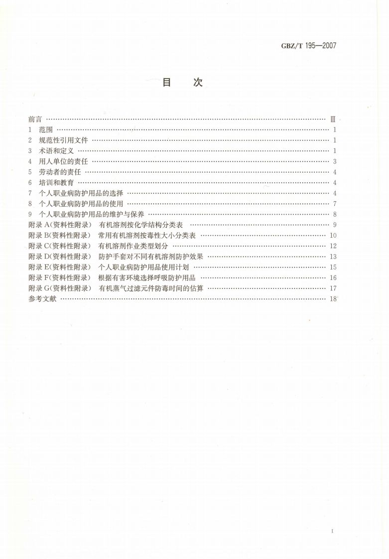 Ics13.100c52GBZ中华人民共和国国家职业卫生标准GBZT195-2007有机溶剂作业场所个人职业病防护用品使用规范The usage criterion of personal protective equipment againstoccupational diseases in the organic solvents workplace2007-08-13发布2008-02-01实施么丛中华人民共和国卫生部发布P MP H清水夫