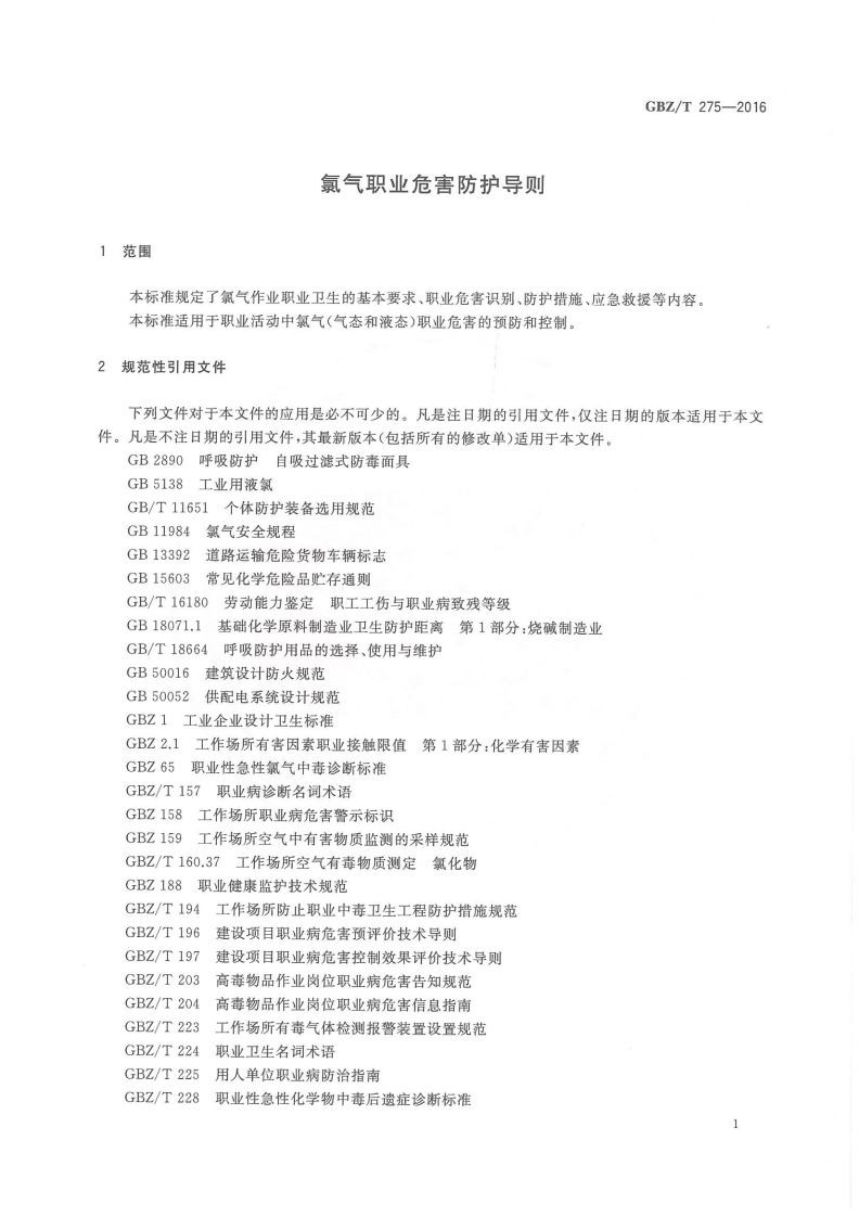 氯气职业危害防护导则Guidelinesforprotectionagainstoccupationalexposuretochlorine348072@abc5天前发布关注私信5.34MB20页028氯气职业危害防护导则Guidelinesforprotectionagainstoccupationalexposuretochlorine此内容为付费资源,请付费后查看¥13¥19黄金会员免费钻石会员免费立即购买您当前未登录!建议登陆后购买,可保存购买订单付费资源 第1页 / 共20页 第2页 / 共20页 第3页 / 共20页 第4页 / 共20页 第5页 / 共20页 试读已结束,还剩15页,您可下载完整版后进行离线阅读 THE END标准规范 文本预览 1Cs13.100C52GaZ中华人民共和国国家职业卫生标准GBZ/T275-2016氯气职业危害防护导则Guidelines for protection against occupational exposure to chlorine2016-11-04发布2017-05-01实施中华人民共和国国家卫生和计划生育委员会发布 查看更多 收起部分 喜欢就支持一下吧收藏