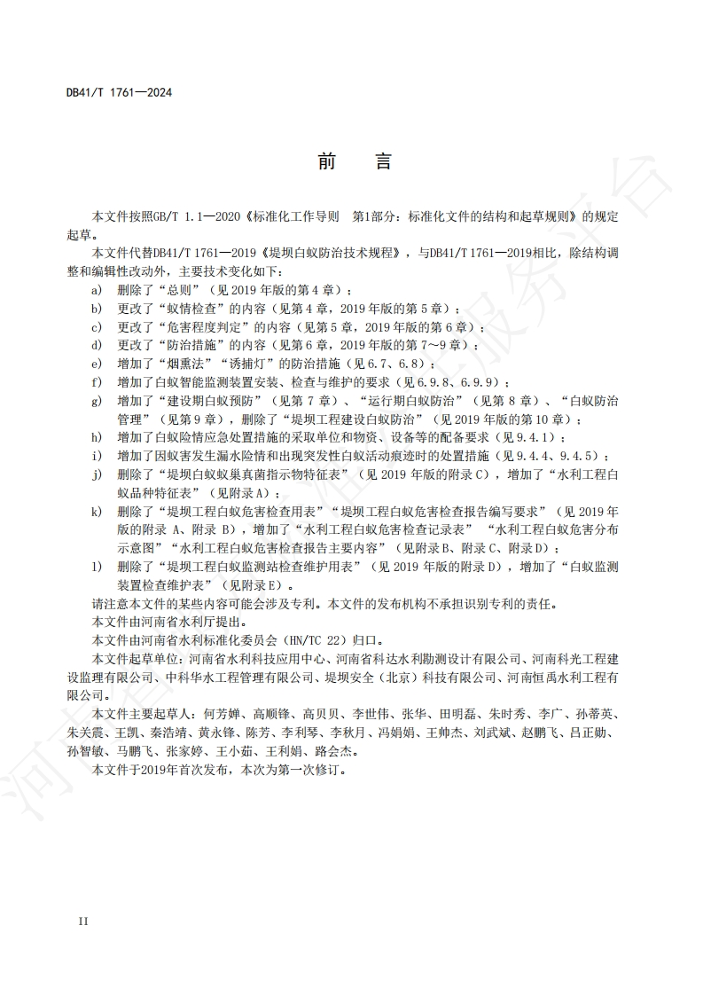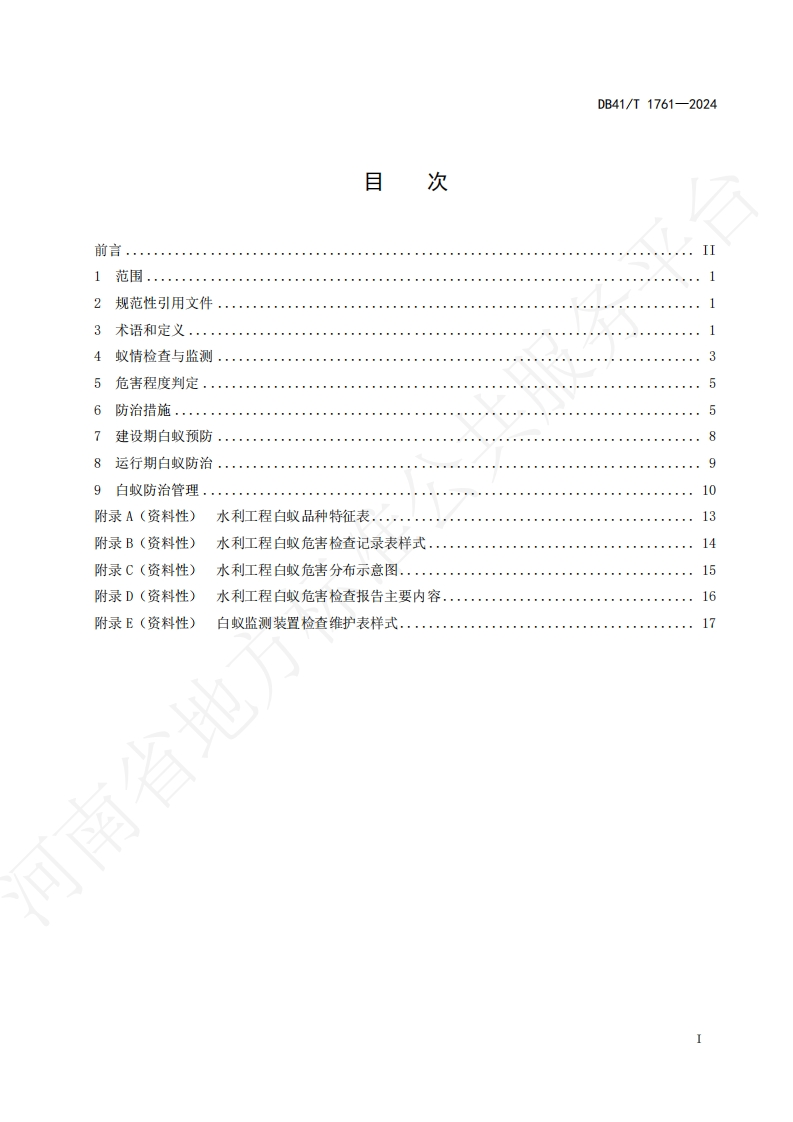 水利工程白蚁预防治理技术规程348072@abc5天前发布关注私信0.90MB21页040水利工程白蚁预防治理技术规程此内容为付费资源,请付费后查看¥13¥19黄金会员免费钻石会员免费立即购买您当前未登录!建议登陆后购买,可保存购买订单付费资源 第1页 / 共21页 第2页 / 共21页 第3页 / 共21页 第4页 / 共21页 第5页 / 共21页 试读已结束,还剩16页,您可下载完整版后进行离线阅读 THE END标准规范 文本预览 ICS93.160CCS P 550841河南省地方标准DB41/T1761-2024代替DB41/T1761一2019水利工程白蚁预防治理技术规程可南省地万标2024-10-10发布2025-01-09实施河南省市场监督管理局发布 查看更多 收起部分 喜欢就支持一下吧收藏