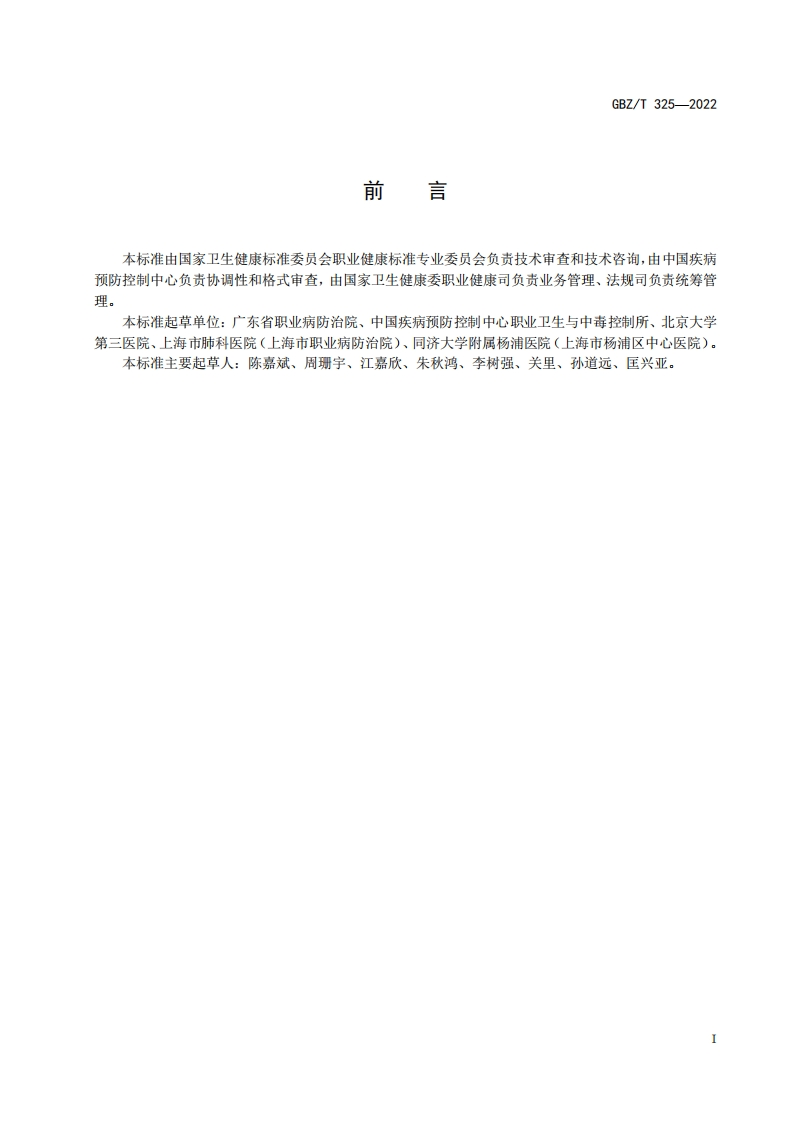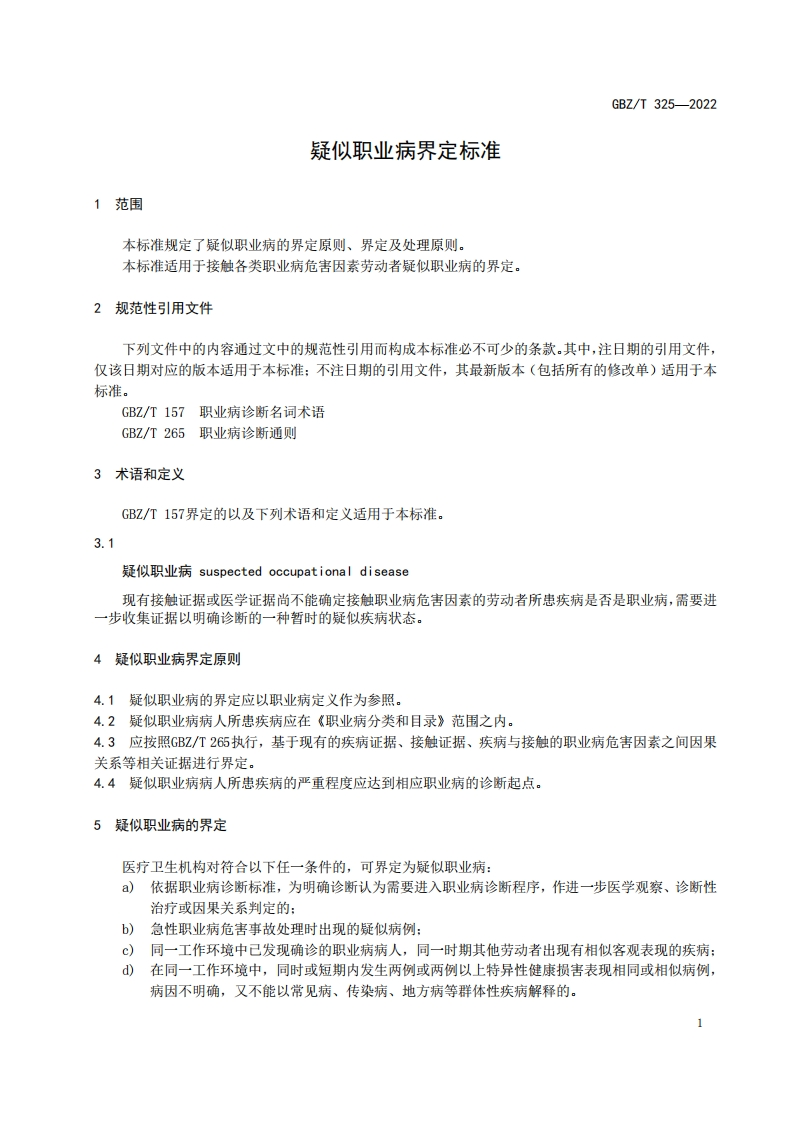 疑似职业病界定标准Identificationstandardforsuspectedoccupationaldisease348072@abc4天前发布关注私信0.23MB6页028疑似职业病界定标准Identificationstandardforsuspectedoccupationaldisease此内容为付费资源,请付费后查看¥13¥19黄金会员免费钻石会员免费立即购买您当前未登录!建议登陆后购买,可保存购买订单付费资源 第1页 / 共6页 第2页 / 共6页 第3页 / 共6页 第4页 / 共6页 第5页 / 共6页 试读已结束,还剩1页,您可下载完整版后进行离线阅读 THE END标准规范 文本预览 1CS13.100CCS C 60GEZ中华人民共和国国家职业卫生标准GBZT325-2022疑似职业病界定标准Identification standard for suspected occupational disease2022-03-16发布2022-09-01实施中华人民共和国国家卫生健康委员会发布 查看更多 收起部分 喜欢就支持一下吧收藏