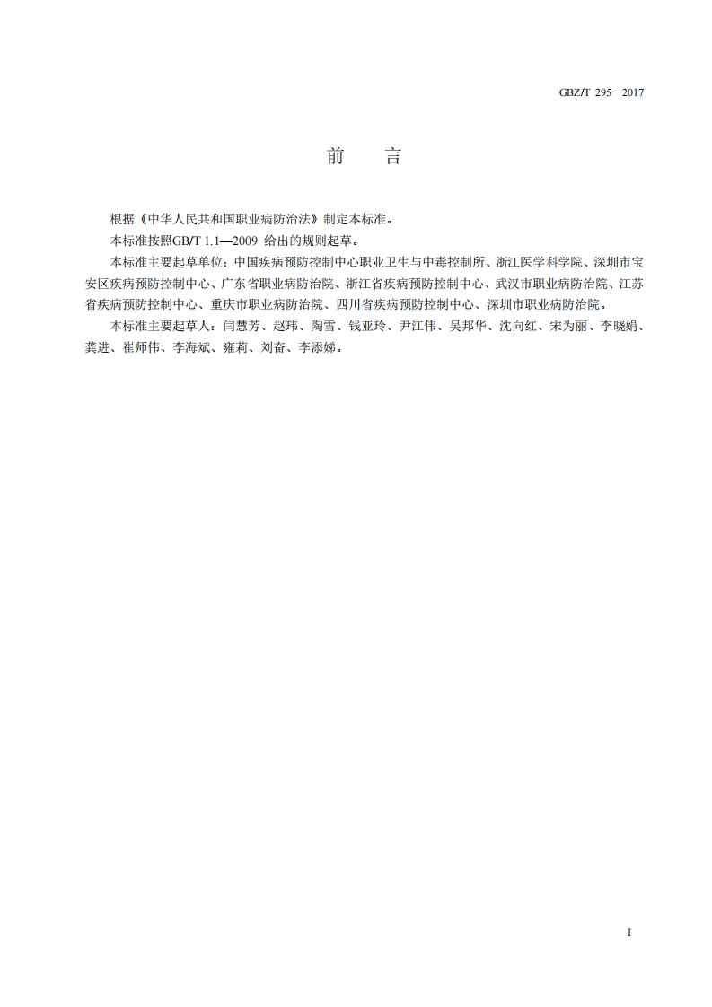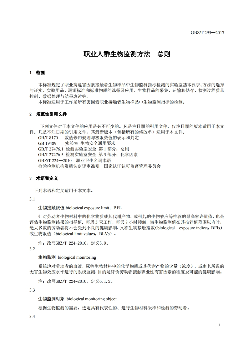 职业人群生物监测方法总则Generalprinciplesofbiologicalmonitoringmethodinoccupationalpopulation348072@abc3天前发布关注私信0.49MB14页050职业人群生物监测方法总则Generalprinciplesofbiologicalmonitoringmethodinoccupationalpopulation此内容为付费资源,请付费后查看¥13¥19黄金会员免费钻石会员免费立即购买您当前未登录!建议登陆后购买,可保存购买订单付费资源 第1页 / 共14页 第2页 / 共14页 第3页 / 共14页 第4页 / 共14页 第5页 / 共14页 试读已结束,还剩9页,您可下载完整版后进行离线阅读 THE END标准规范 文本预览 ICS13.100C52GBZ中华人民共和国国家职业卫生标准GBZT295-2017职业人群生物监测方法总测General principles of biological monitoring method in occupational population2017-09-30发布2018-04-15实施中华人民共和国国家卫生和计划生育委员会发布 查看更多 收起部分 喜欢就支持一下吧收藏