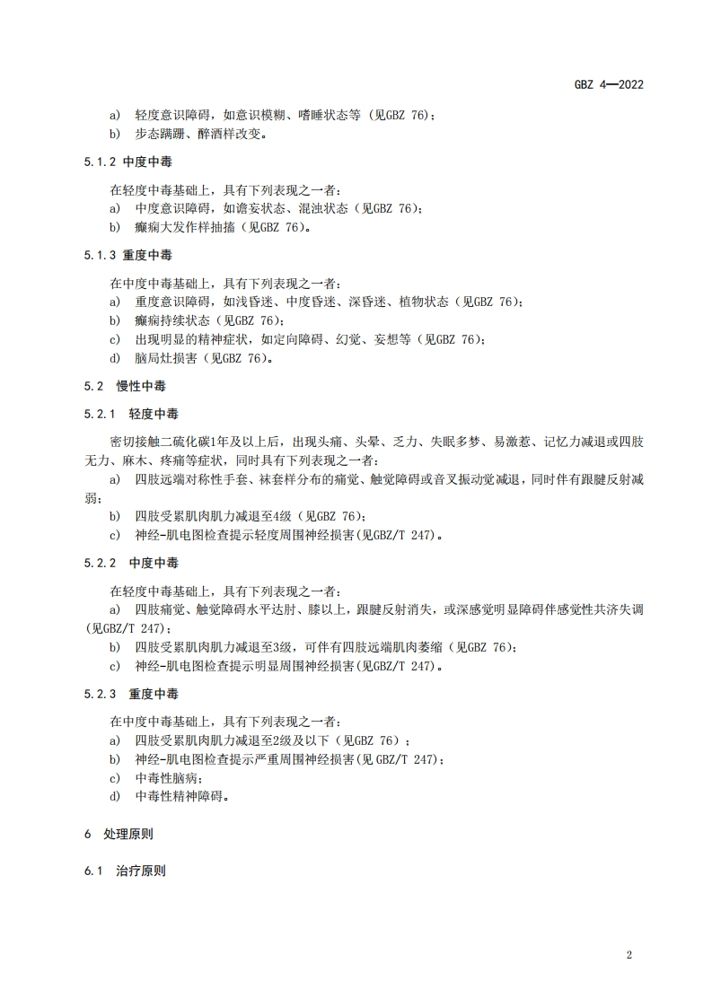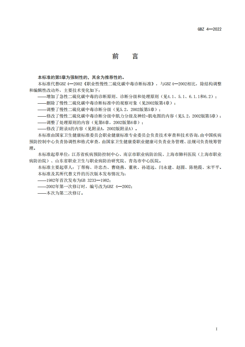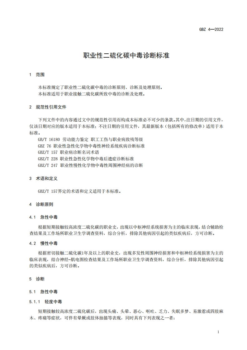 职业性二硫化碳中毒诊断标准Diagnosticstandardforoccupationalcarbondisulfidepoisoning348072@abc前天发布关注私信0.29MB8页020职业性二硫化碳中毒诊断标准Diagnosticstandardforoccupationalcarbondisulfidepoisoning此内容为付费资源,请付费后查看¥13¥19黄金会员免费钻石会员免费立即购买您当前未登录!建议登陆后购买,可保存购买订单付费资源 第1页 / 共8页 第2页 / 共8页 第3页 / 共8页 第4页 / 共8页 第5页 / 共8页 试读已结束,还剩3页,您可下载完整版后进行离线阅读 THE END标准规范 文本预览 1C513.100CCS C 60B☑中华人民共和国国家职业卫生标准GBZ4-2022代替GBZ4一2002职业性二硫化碳中毒诊断标准Diagnostic standard for occupational carbon disulfide poisoning2022-03-16发布2022-09-01实施中华人民共和国国家卫生健康委员会发布 查看更多 收起部分 喜欢就支持一下吧收藏