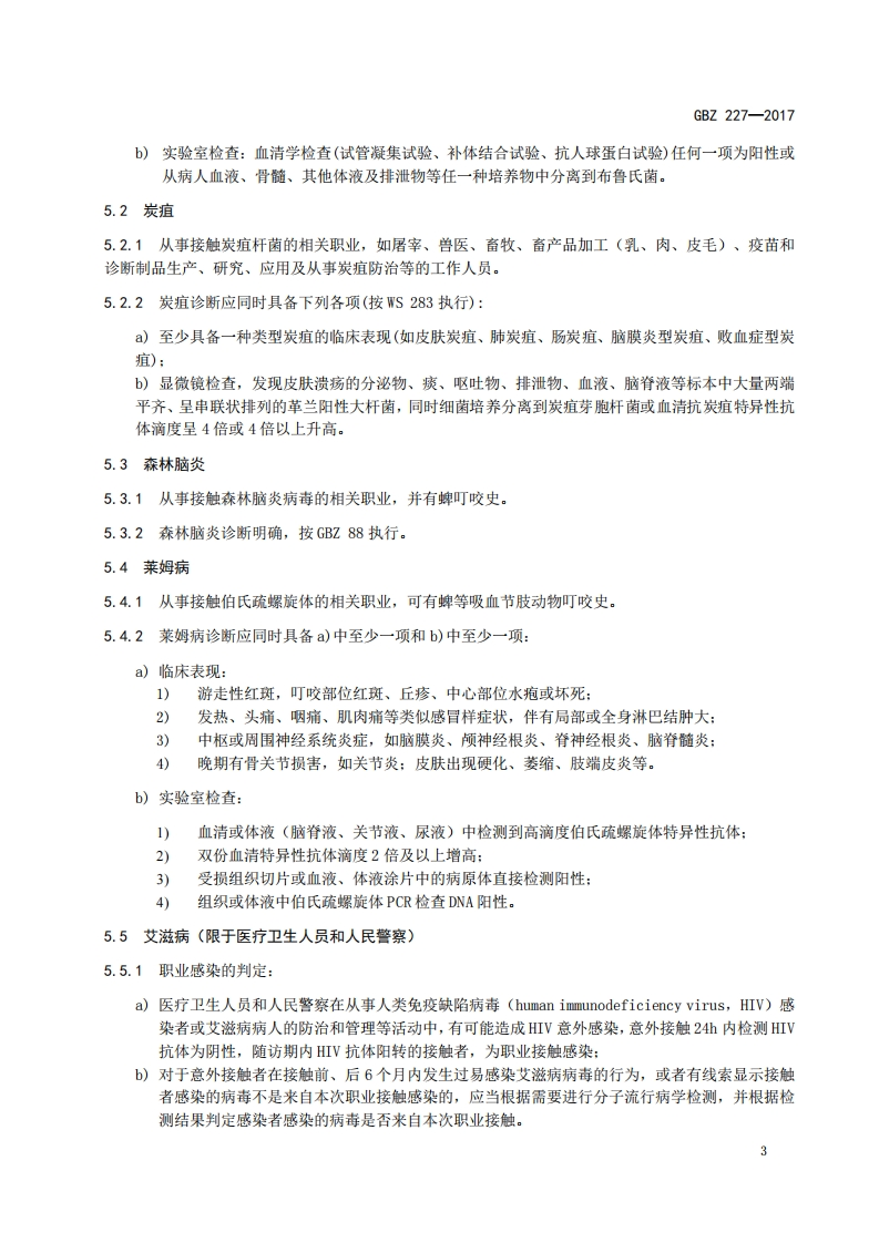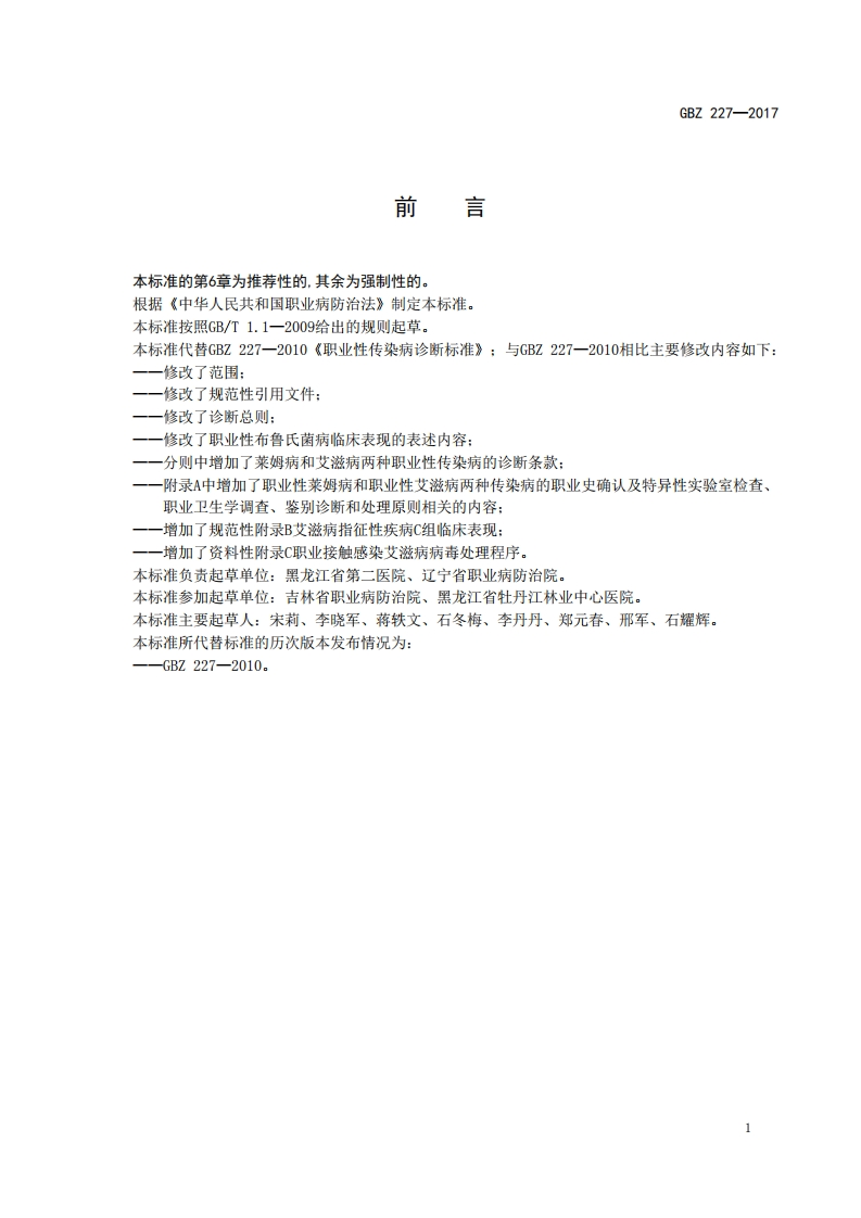 职业性传染病的诊断Diagnosisofoccupationalinfectiousdisease348072@abc前天发布关注私信0.30MB9页043职业性传染病的诊断Diagnosisofoccupationalinfectiousdisease此内容为付费资源,请付费后查看¥13¥19黄金会员免费钻石会员免费立即购买您当前未登录!建议登陆后购买,可保存购买订单付费资源 第1页 / 共9页 第2页 / 共9页 第3页 / 共9页 第4页 / 共9页 第5页 / 共9页 试读已结束,还剩4页,您可下载完整版后进行离线阅读 THE END标准规范 文本预览 ICS13.100C60GBZ中华人民共和国国家职业卫生标准GBZ227—2017代替GBZ227一2010职业性传染病的诊断Diagnosis of occupational infectious disease2017-05-18发布2017-11-01实施中华人民共和国发布国家卫生和计划生育委员会 查看更多 收起部分 喜欢就支持一下吧收藏