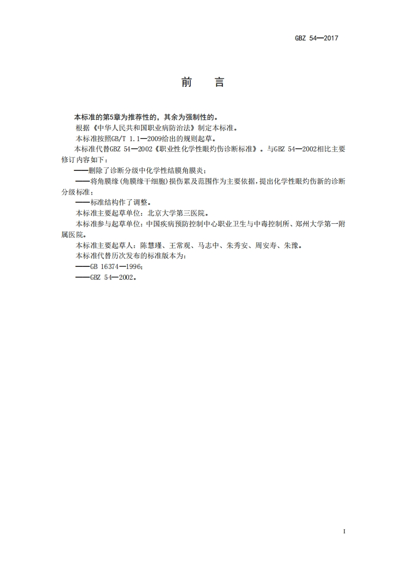 职业性化学性眼灼伤的诊断Diagnosisofoccupationalchemicaleyeburns348072@abc前天发布关注私信0.21MB6页022职业性化学性眼灼伤的诊断Diagnosisofoccupationalchemicaleyeburns此内容为付费资源,请付费后查看¥13¥19黄金会员免费钻石会员免费立即购买您当前未登录!建议登陆后购买,可保存购买订单付费资源 第1页 / 共6页 第2页 / 共6页 第3页 / 共6页 第4页 / 共6页 第5页 / 共6页 试读已结束,还剩1页,您可下载完整版后进行离线阅读 THE END标准规范 文本预览 ICS13.100C60GBZ中华人民共和国国家职业卫生标准GBZ54-2017代替GBZ54一2002职业性化学性眼灼伤的诊断Diagnosis of occupational chemical eye burns2017-09-30发布2018-04-01实施中华人民共和国国家卫生和计划生育委员会发布 查看更多 收起部分 喜欢就支持一下吧收藏