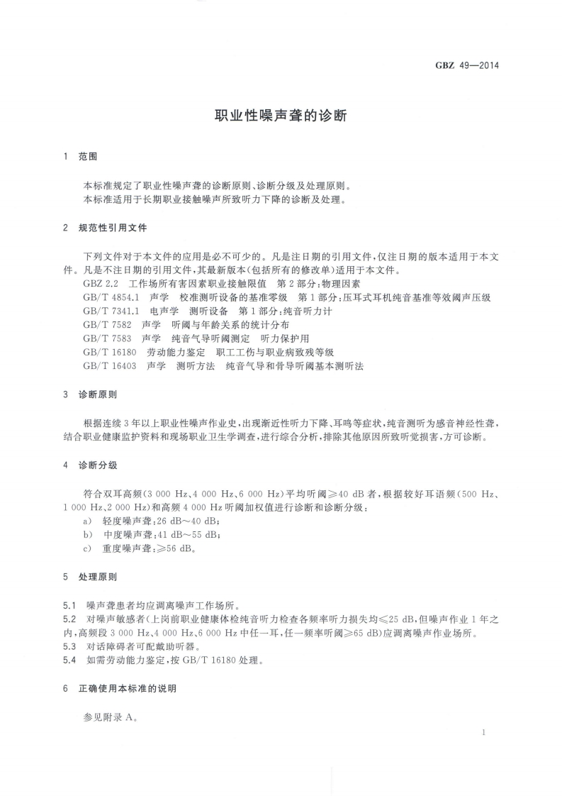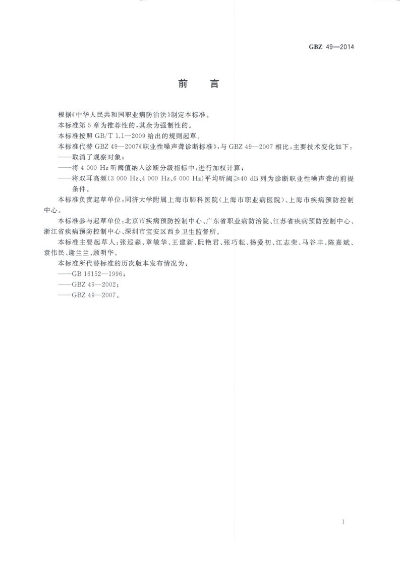 职业性噪声聋的诊断Diagnosisofoccupationalnoise-induceddeafness348072@abc前天发布关注私信1.92MB5页047职业性噪声聋的诊断Diagnosisofoccupationalnoise-induceddeafness此内容为付费资源,请付费后查看¥13¥19黄金会员免费钻石会员免费立即购买您当前未登录!建议登陆后购买,可保存购买订单付费资源 第1页 / 共5页 第2页 / 共5页 第3页 / 共5页 第4页 / 共5页 第5页 / 共5页 已完成全部阅读,共5页 THE END标准规范 文本预览 1CS13.100C60GBZ中华人民共和国国家职业卫生标准GBZ49-2014代替GBZ49—2007职业性噪声聋的诊断Diagnosis of occupational noise-induced deafness2014-10-13发布2015-03-01实施中华人民共和国国家卫生和计划生育委员会发布 查看更多 收起部分 喜欢就支持一下吧收藏
