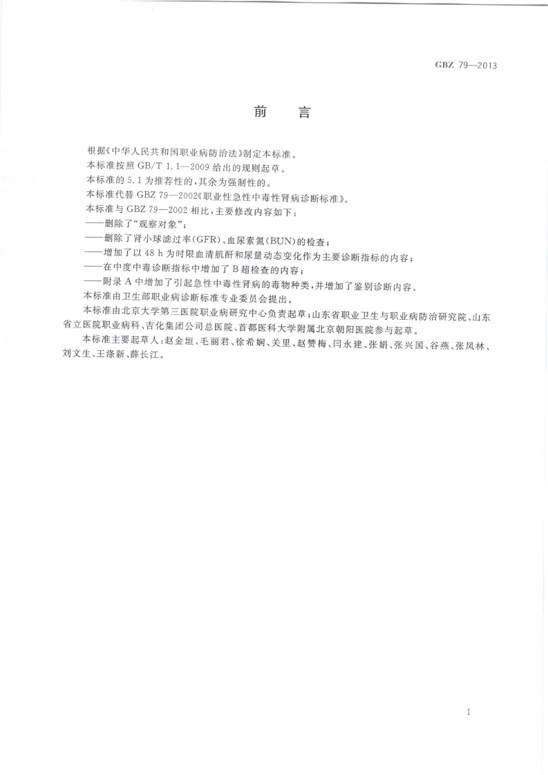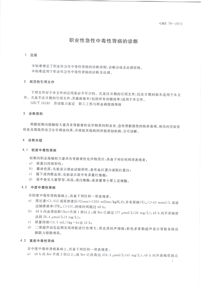 职业性急性中毒性肾病的诊断Diagnosisofoccupationalacutetoxicnephropathy348072@abc昨天发布关注私信2.54MB6页034职业性急性中毒性肾病的诊断Diagnosisofoccupationalacutetoxicnephropathy此内容为付费资源,请付费后查看¥13¥19黄金会员免费钻石会员免费立即购买您当前未登录!建议登陆后购买,可保存购买订单付费资源 第1页 / 共6页 第2页 / 共6页 第3页 / 共6页 第4页 / 共6页 第5页 / 共6页 试读已结束,还剩1页,您可下载完整版后进行离线阅读 THE END标准规范 文本预览 1CS13.100C60B☑中华人民共和国国家职业卫生标准GBZ79-2013代替GBZ79一2002职业性急性中毒性肾病的诊断Diagnosis of occupational acute toxic nephropathy2013-02-07发布2013-08-01实施中华人民共和国卫生邵发布 查看更多 收起部分 喜欢就支持一下吧收藏