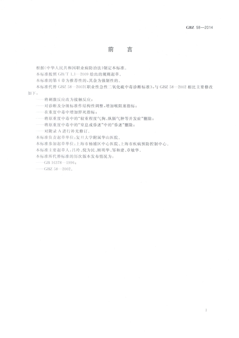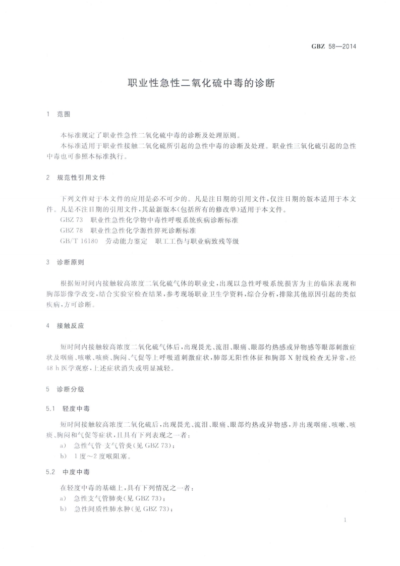 职业性急性二氧化硫中毒的诊断Diagnosisofoccupationalacutesulfurdioxidepoisoning348072@abc昨天发布关注私信1.96MB5页035职业性急性二氧化硫中毒的诊断Diagnosisofoccupationalacutesulfurdioxidepoisoning此内容为付费资源,请付费后查看¥13¥19黄金会员免费钻石会员免费立即购买您当前未登录!建议登陆后购买,可保存购买订单付费资源 第1页 / 共5页 第2页 / 共5页 第3页 / 共5页 第4页 / 共5页 第5页 / 共5页 已完成全部阅读,共5页 THE END标准规范 文本预览 ICS13.100C60GBZ中华人民共和国国家职业卫生标准GBZ58-2014代替GB258-2002职业性急性二氧化硫中毒的诊断Diagnosis of occupational acute sulfur dioxide poisoning2014-10-13发布2015-03-01实施中华人民共和国国家卫生和计划生育委员会发布 查看更多 收起部分 喜欢就支持一下吧收藏